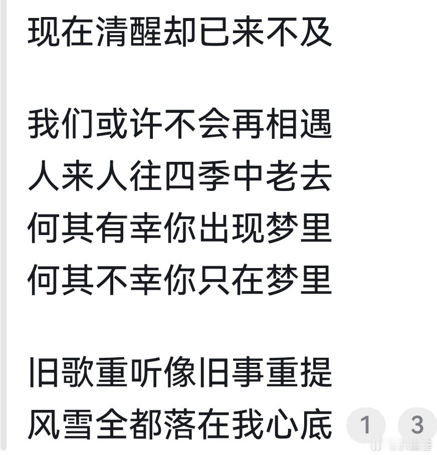 海来阿木的最近作品《梦底》亮相春晚舞台,立即走进了听者的心,几乎每个人都从中听到了自己的故事!这是这首歌最伟大的地方。那么,它写的是爱情还是亲情?我听的时候,首先想到的是亲情,我想到了妈妈,想到了她生前大量的生活片段,和我跟她的点点滴滴,想到了打算接她和父亲到北京和我们一起生活,直到她走了,我才意识到,老天没给我们留下实现这个想法的时间,想到了她走了之后,我总在梦里见到她,仍然是关心和疼爱,可能,虽然我已经不年轻,但在她心里,我是老小吧……我觉得,这首朴实无华的歌词写的太好了!说实话,这些年我不是很关心春晚,但是今年的几首歌,着实不错,这是晚会导演的慧眼。大量年轻人,觉得写的是爱情,也很对,对于爱情而言,或许是遇而不惜,想而己离,失而梦见。对于亲情,则是无尽的思念!只有心里有遗憾的人才能听懂这首歌的内涵,无论是亲情还是爱情!