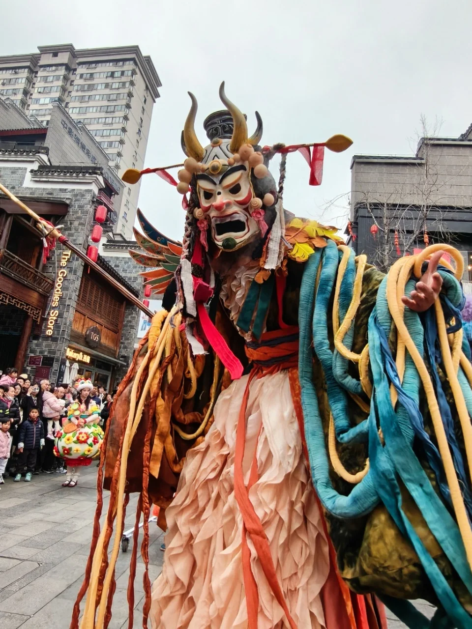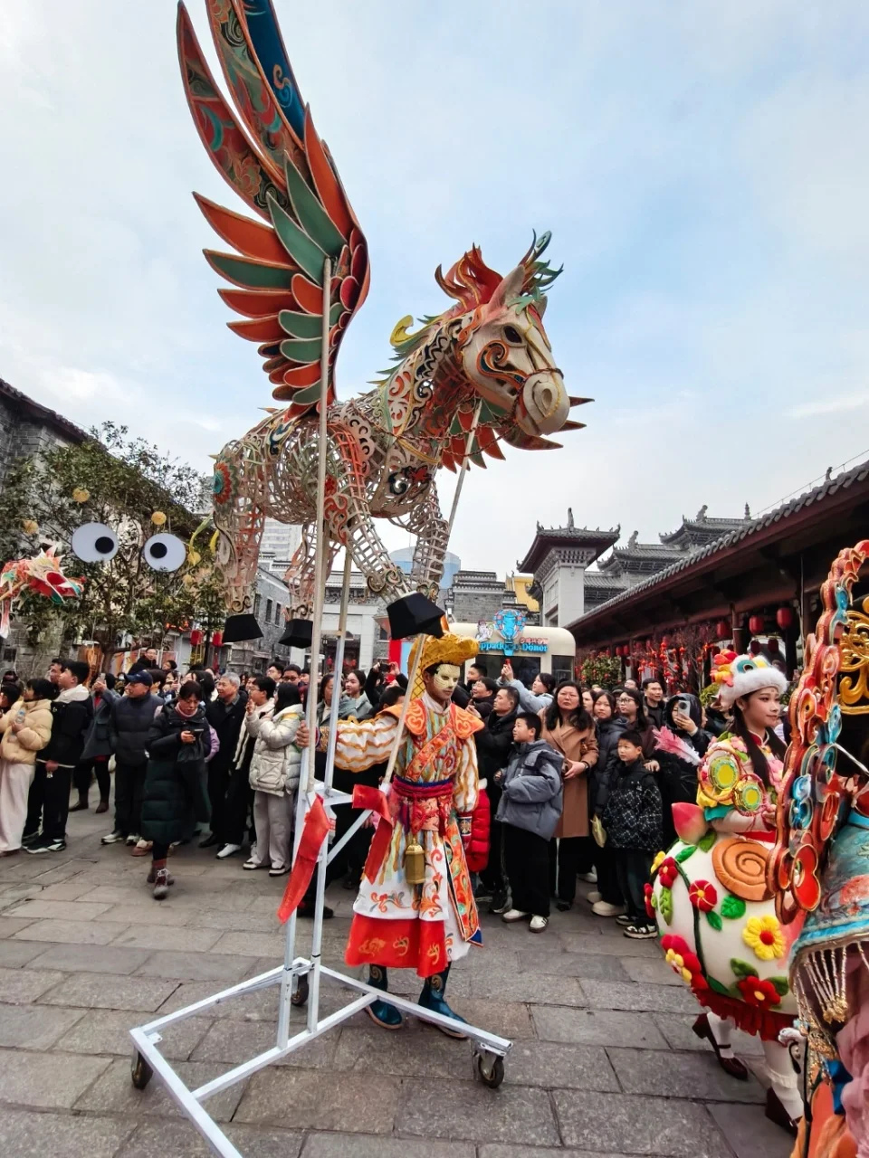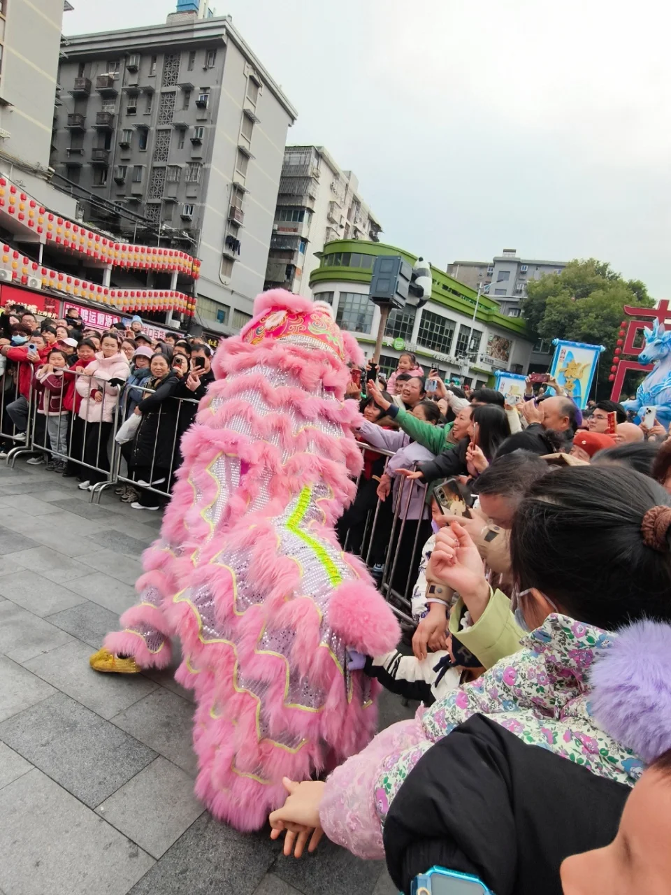 礼毕出门,热闹升级!飞马传竹、马🐎舞、梅花桩舞狮、舞龙🐉巡游……精彩不停歇。最逗的是财神爷踩高跷,比别人高出一截,专门往人堆里送福袋,抢到就是赚到!整个街区红红火火🔥🔥,随手一拍📸就是年味大片!