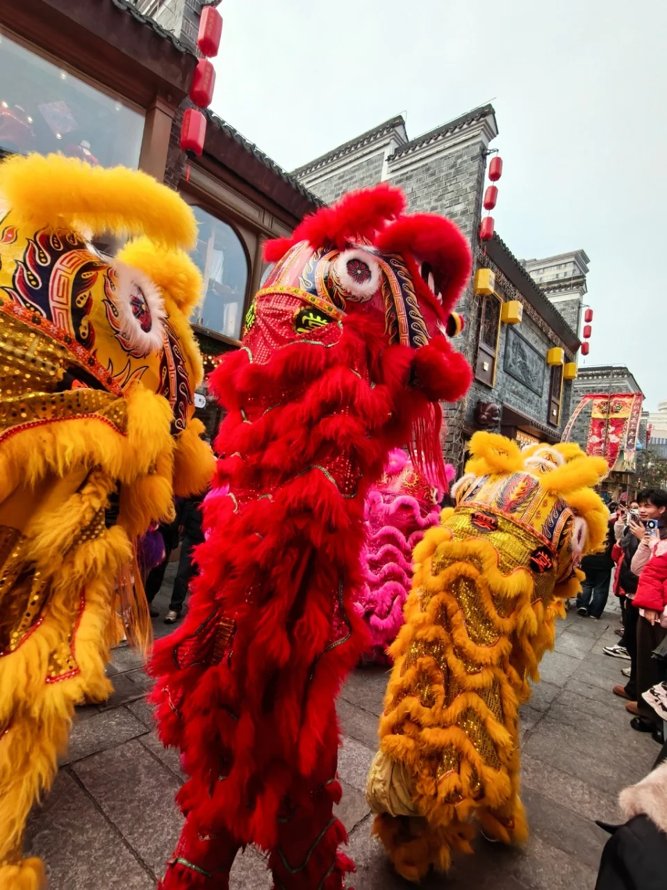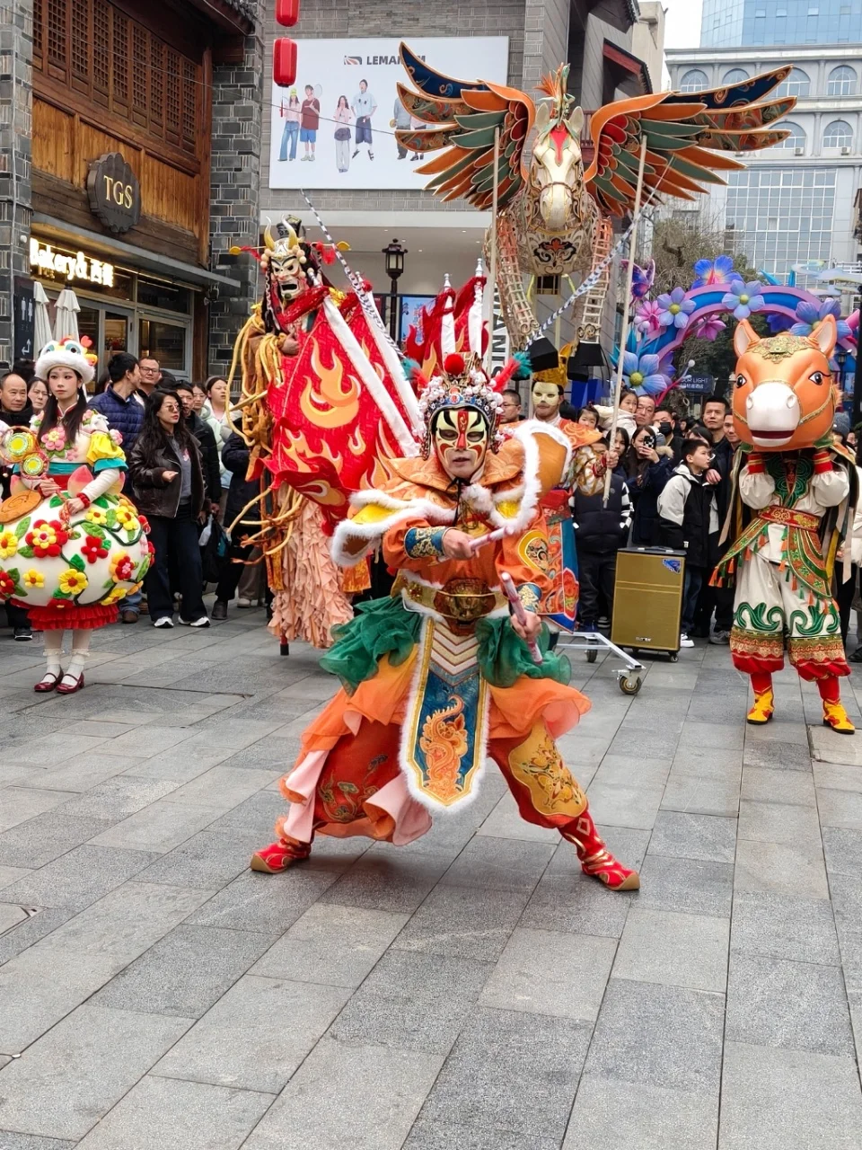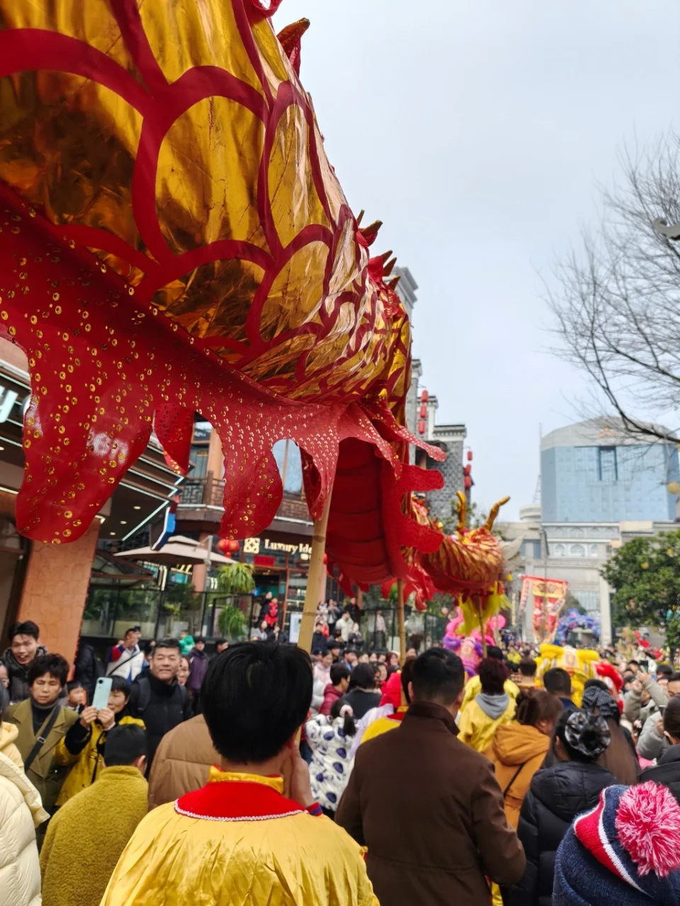 礼毕出门,热闹升级!飞马传竹、马🐎舞、梅花桩舞狮、舞龙🐉巡游……精彩不停歇。最逗的是财神爷踩高跷,比别人高出一截,专门往人堆里送福袋,抢到就是赚到!整个街区红红火火🔥🔥,随手一拍📸就是年味大片!