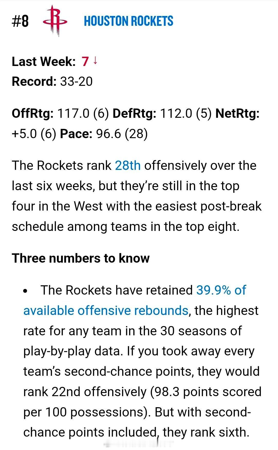 NBA最新实力榜,火箭队第八,前七为:活塞、马刺、雷霆、尼克斯、掘金、凯尔特人、骑士