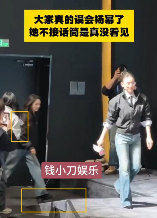 大家真的冤枉杨幂了,她没接话筒不是傲慢,而是真没看见啊。 可以去看一下完整视频,因为入场的地方有一个大斜坡,每个人进来都会盯着那个斜坡,而且大家都是跳着上去的。杨幂也是上斜坡的时候跨的步子比较大,看起来像是在跑。 易烊千玺和朱一龙入场的时候,是在进门处就有人给递话筒。 宋佳入场的时候,走到斜坡前面,工作人员才伸话筒。 工作人员直接把话筒举到她脖子旁边,她没看见,因为她在盯着那个斜坡。 后来工作人员把话筒往前伸,伸到了宋佳的胳膊边上,宋佳才看到的,此时工作人员的身体是在队列外的。 到了杨幂入场的时候,工作人员正脸是对着杨幂的,手里也有话筒,按理说,她应该第一时间给杨幂递话筒。 但不知道为什么,工作人员却没有立刻把话筒递给杨幂,反而还把手收了回去,连站出队列的身体也缩了回去。 一直到杨幂上了台阶,工作人员才在杨幂背后伸出话筒,搁谁也不可能看得见啊。