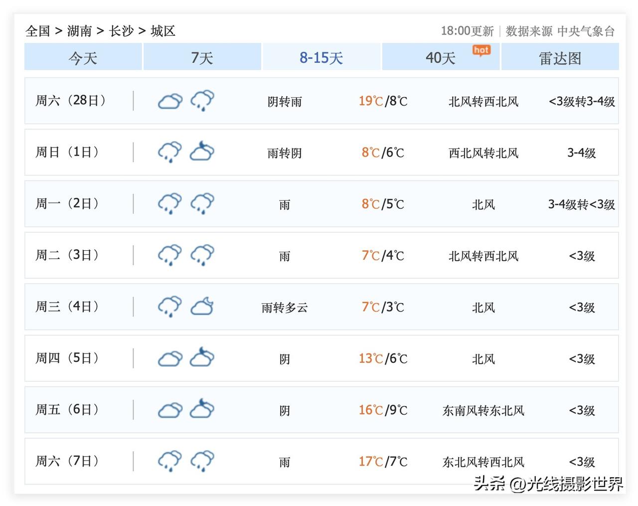 哎!好可怜啊!2月22日,大年初六,春运返程高峰期,可是,湖南省长沙市,小雨……哎!2月22日到24日,重庆,湖北,湖南,大范围降雨,大雨,局部暴雨……这对于高速公路网的大堵车来说,推波助澜,事故易多发,大家自驾车要小心谨慎啊! 哎!这波超强冷空气南下……长沙又要被速冻……最近,长沙市,忽冷忽热,天气随机播放……快速升温,快速降温……啊啊啊! 超级计算机认为,2月25日到3月7日,长沙市可能经常下雨,阴雨连绵,阴冷潮湿是主旋律……啊啊啊! 3月3日,元宵节,长沙下雨,气温4-7度……我的个天啊! 长沙的小伙伴们,真的是够顽强够坚强的,佩服啊!