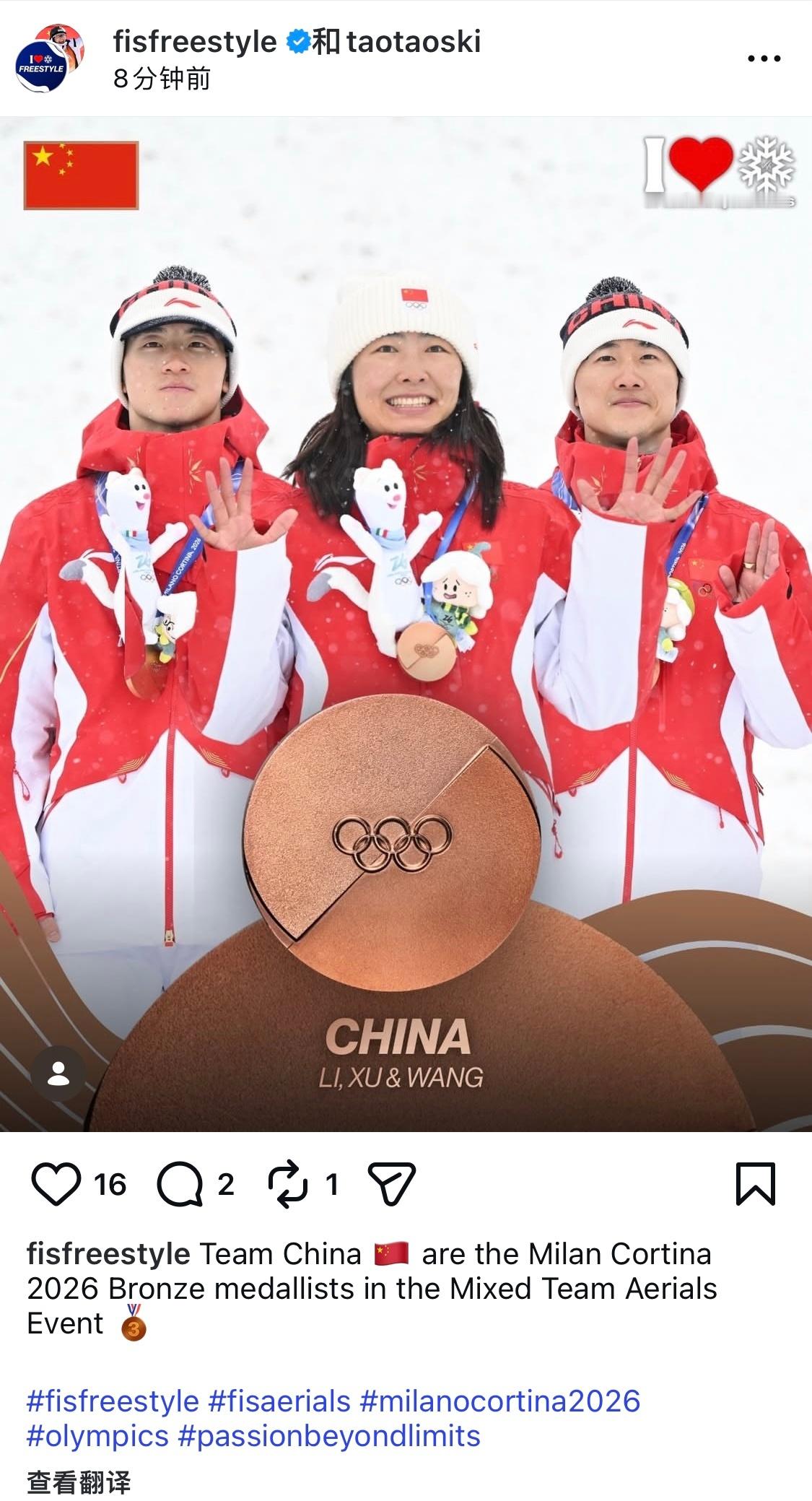 中国队空中技巧混团铜牌桃姐转帖~~~🥉(4年后再战)徐梦桃说4年后咱们再来