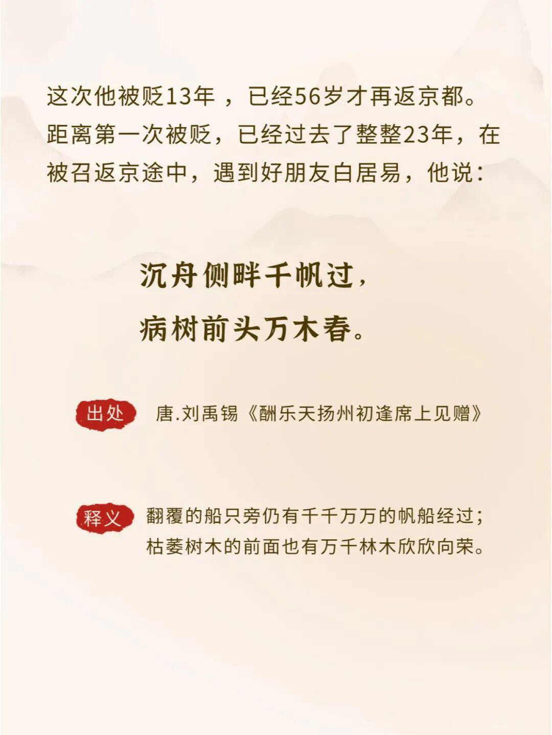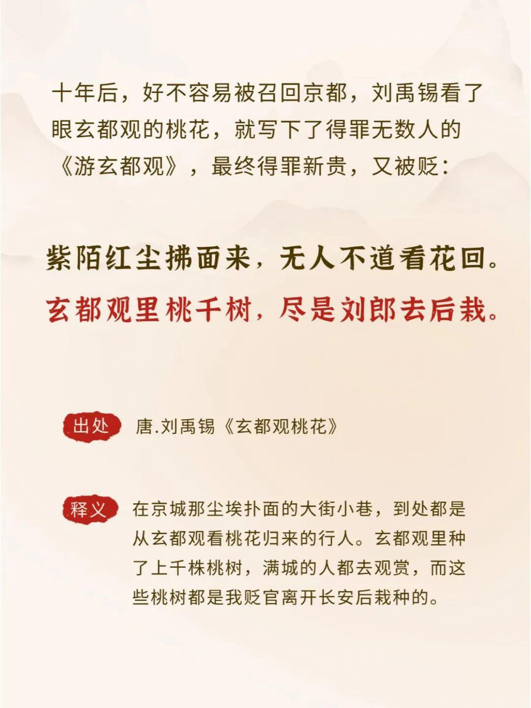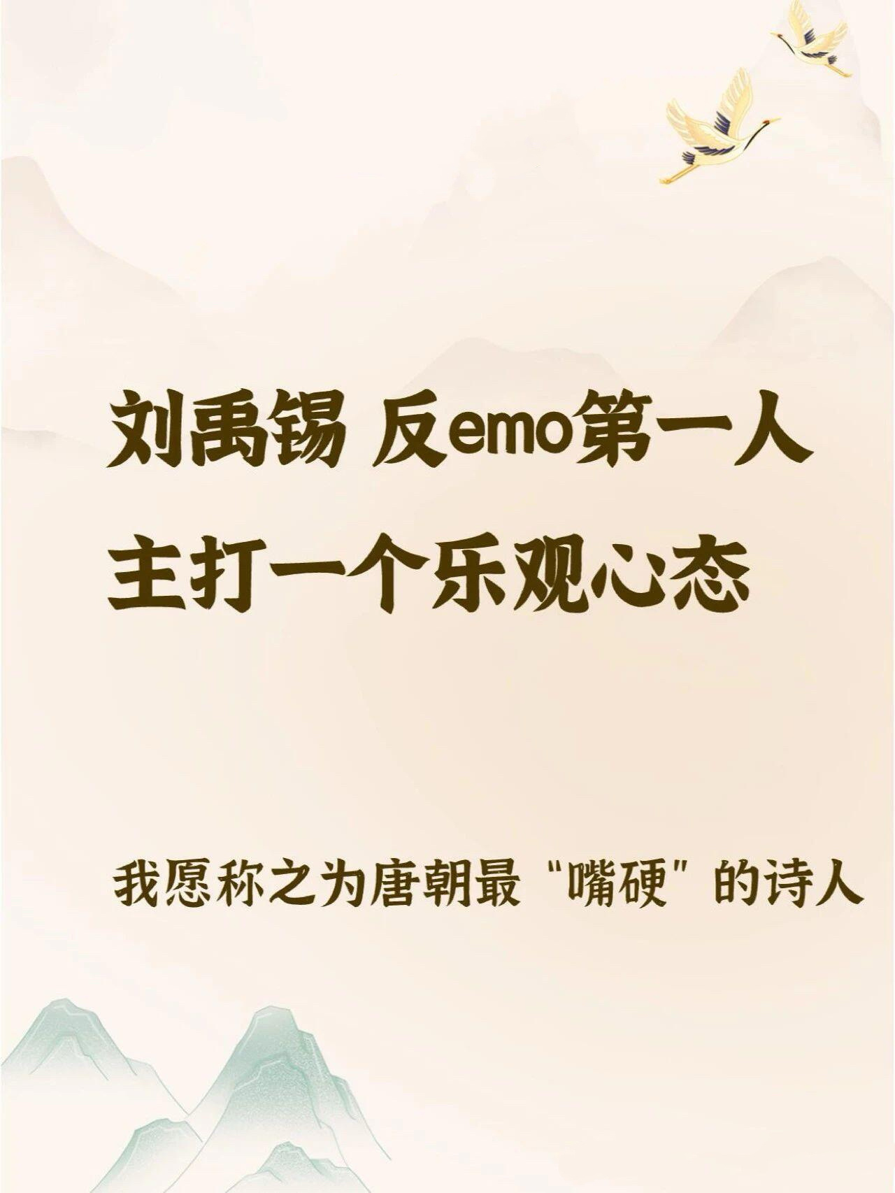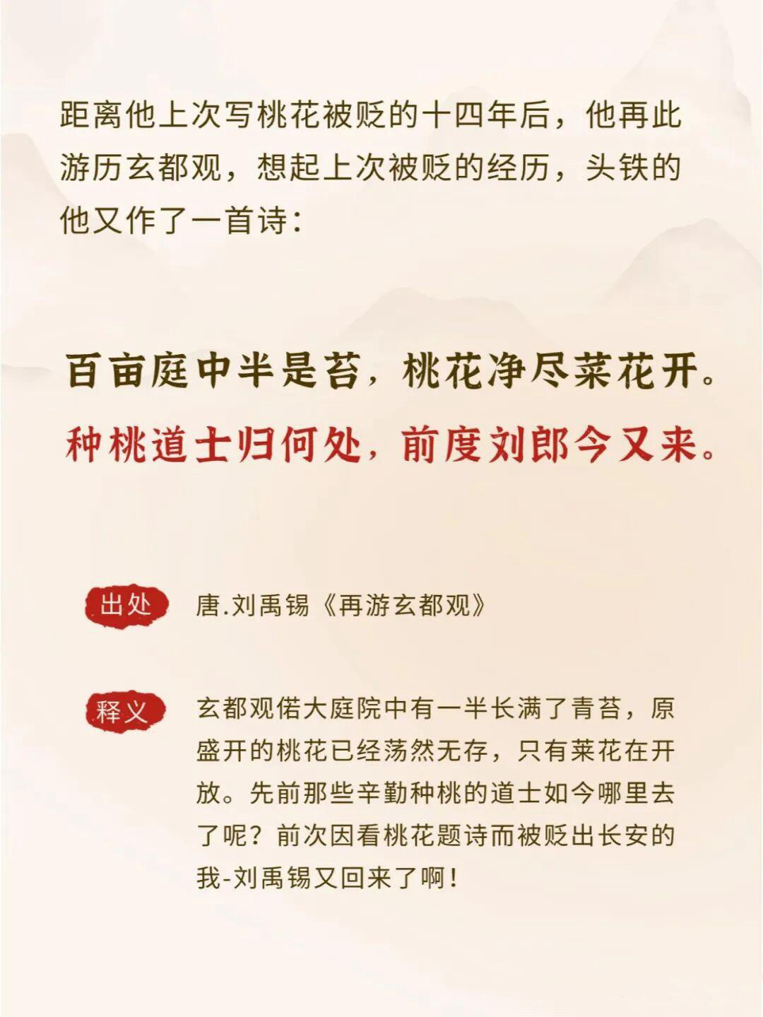 刘禹锡反emo第一人44岁:玄都观里桃千树,尽是刘郎去后栽。56岁:种桃道士归何处,前度刘郎今又来。嘿嘿,爷又回来啦