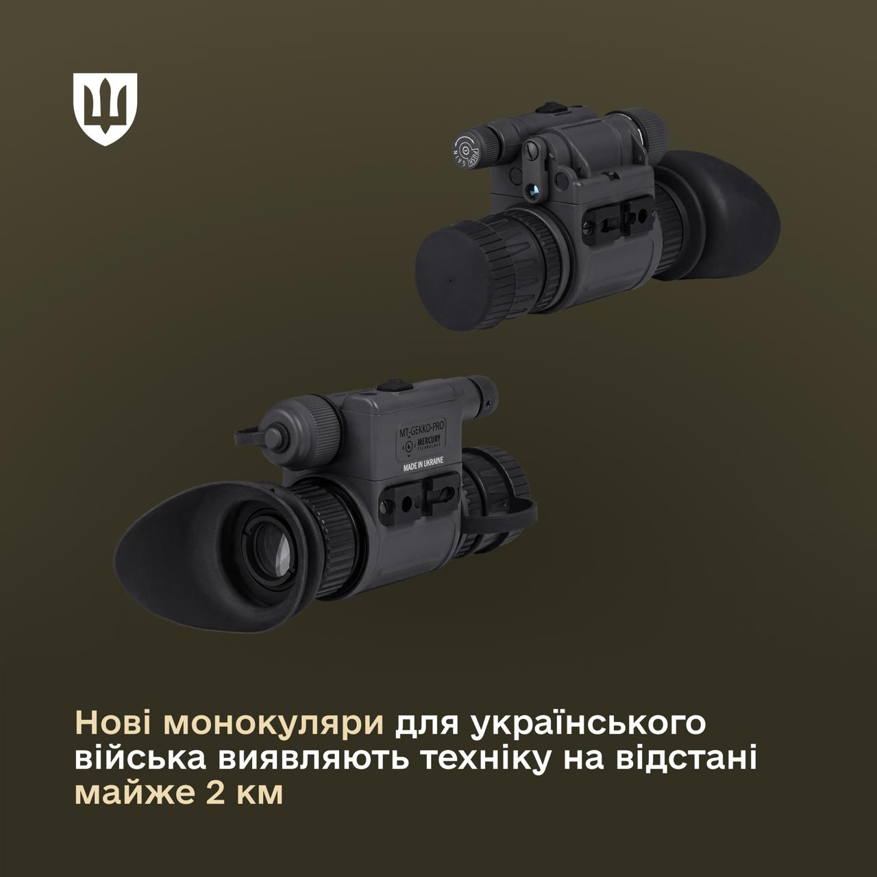 烽火问鼎计划每天认识一件兵器 乌克兰武装部队已开始大批量列装由总部位于敖德萨的水星科技公司制造的MT-GEKKO-PRO-40和-50单筒夜视仪,据称这些系统能够在超过400米的距离内探测敌方人员,并在近2000米的距离内探测车辆。