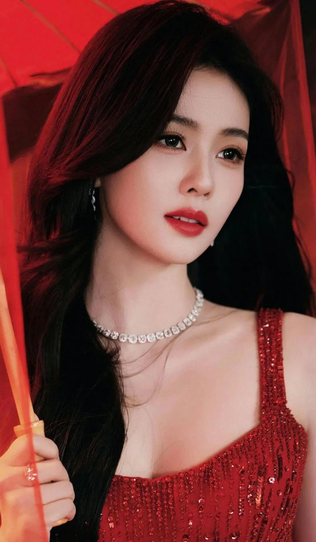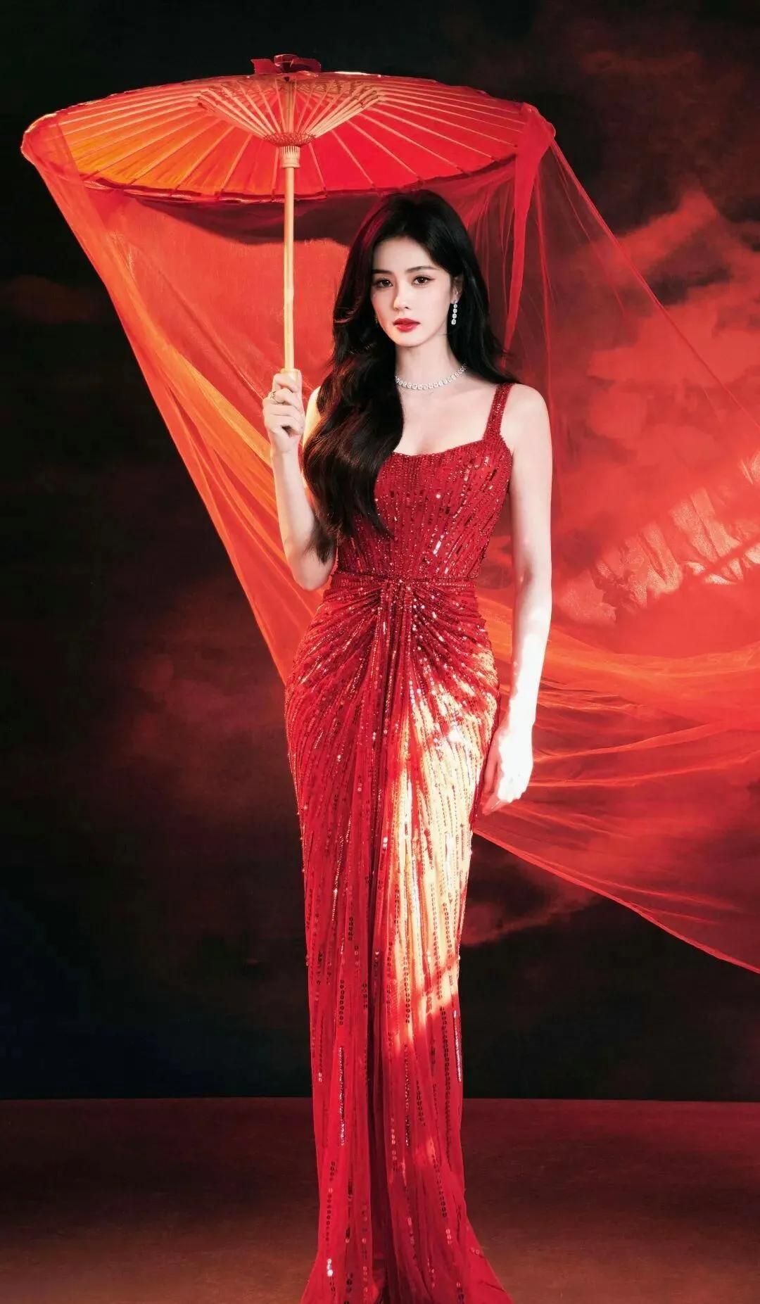 央妈严选的审美果然从不出错!✨ 白鹿这身红色亮片鱼尾裙直接美到心巴上,红裙衬得肤若凝脂,钻石项链点缀其间,贵气又明艳。 手持红伞的造型更是将中式美学拉满,既有东方佳人的温婉,又有顶流女星的大气,这才是内娱红毯的正确打开方式! 白鹿央妈镜头 红色礼服杀