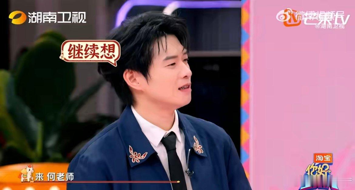 魏大勋尝试用魔法打败何炅何炅:稳赢。魏大勋:看我魔法!偷偷在背后念咒的样子,真