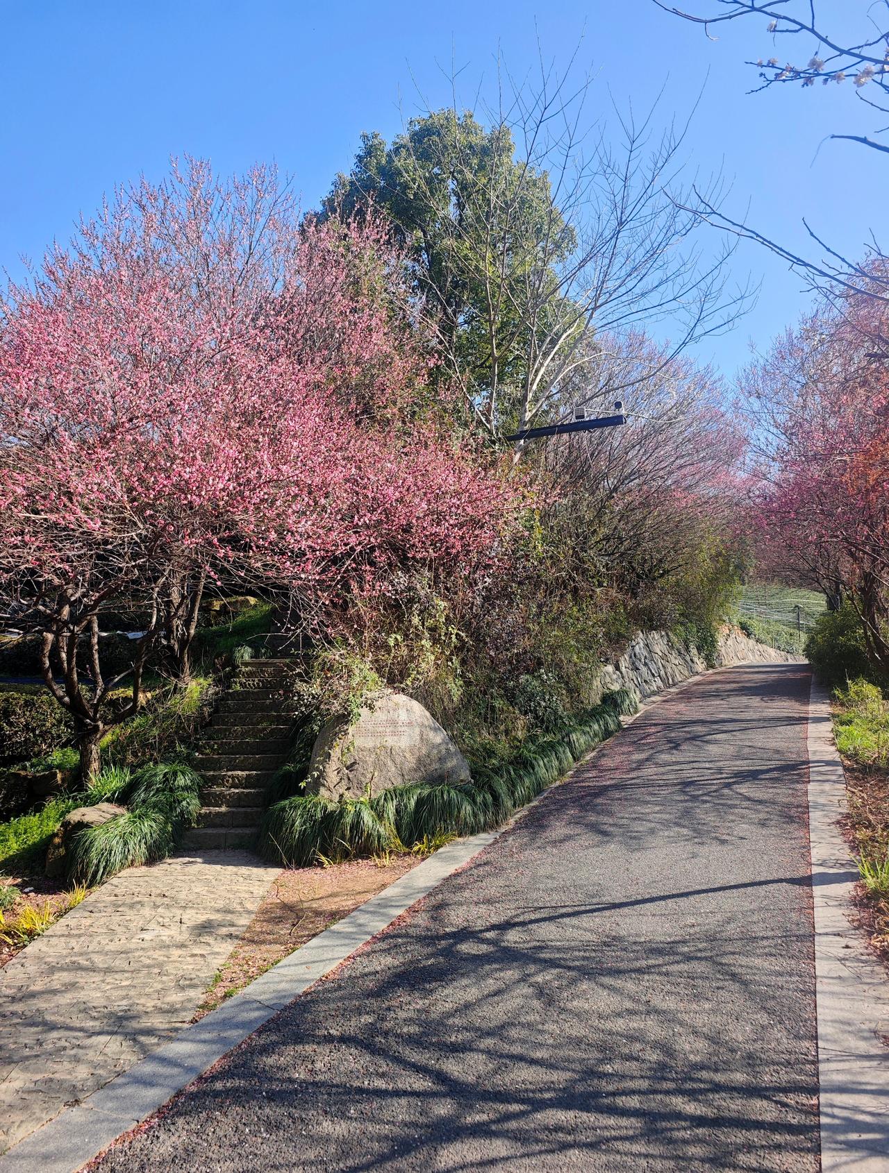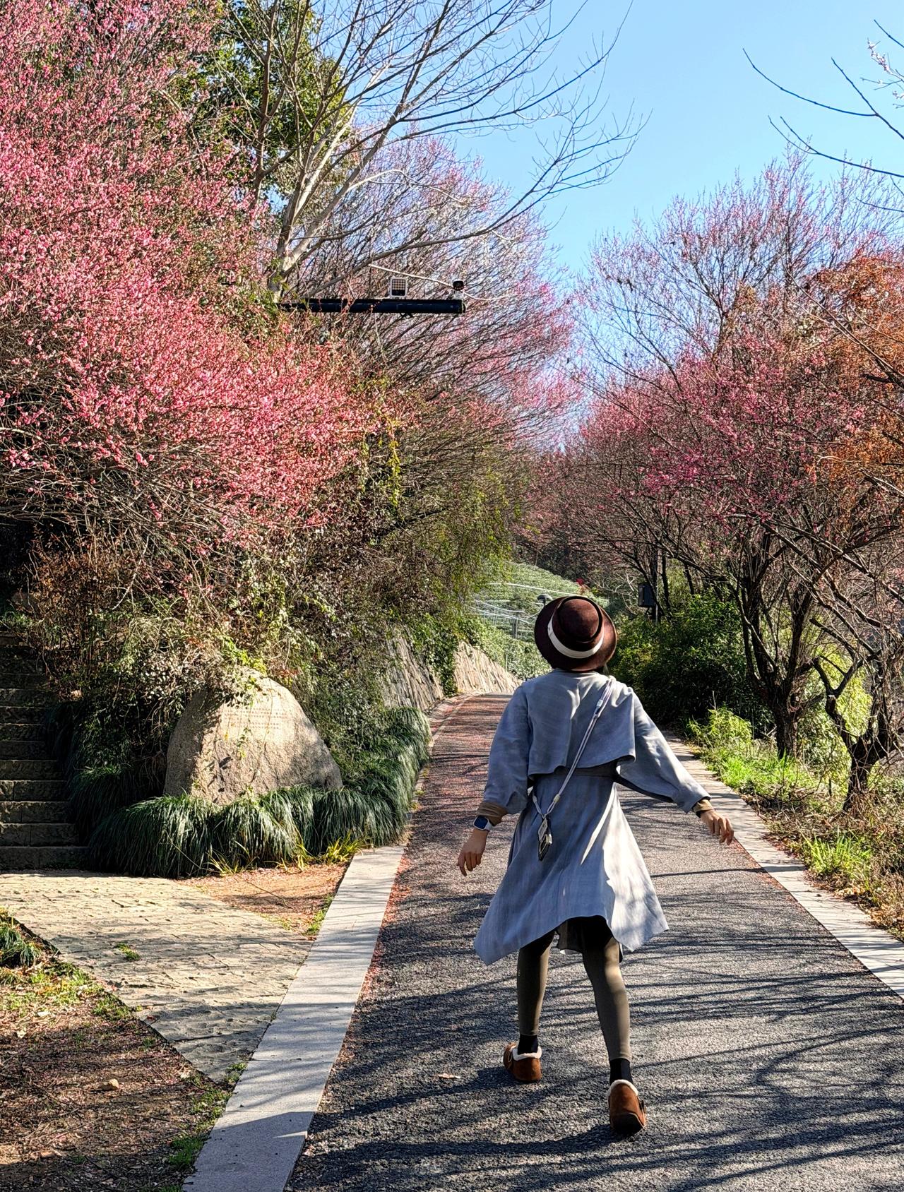 杭州自然环境也太好,愣在人小区徒步一下午 杭州一下子升温到25度,梅花全开了 想去山里晒晒太阳散散步,又不想折腾太远 如果说春节假期找一个适合全家老幼的出行地 ——几乎无爬升,不会人挤人 补给成熟,出行方便,风景怡然 我推荐西溪游步道 二月梅花三月樱花,十月桂花,十二月红枫遍染 乌桕、无患子、梧桐树等落叶乔木点缀其间 背景是四时不断的青绿茶田,深绿山丘 登上凉亭可远眺西溪湿地全景 可通北高峰、天下第一财神庙 近点三五公里小环线视体力安排 走不动远道的长辈 上蹿下跳的小孩儿 放电撒欢的毛孩子 都能玩开心 全程柏油路骑行友好 一个人散步吹风也自在 带点吃吃喝喝露营桌椅更爽 导航杨家牌楼停车场,自驾公共出行都方便 就在市区,挨着山姆、印象城、西溪湿地 却没有人挤人,另辟天地一般自在安静 我们开玩笑说,这儿的人都躺着,没站着的 附近墓地比较多,我个人是不介意的 遇到一位太极满分一身紫衣的当地住户 一字马说上就上,那叫一个行云流水 在凉亭歇脚,我们全程都在佩服感叹 这片山景其实是人家小区的公共绿地 家家种梅,户户养狗,溪水茶山相伴 还在市中心,真是让人疯狂心动 像我租住过的白沙泉,位于宝石山脚下 爬山登顶20分钟,步行西湖15分钟 都是位置难得,地皮值钱 推荐路线:吃过早午饭,在西溪湿地周家村码头坐船赏梅,下午来西溪游步道休闲放空 印象城的泉市牛肉火锅、很久以前羊肉串不错的。还有紫金港的老北京炙子烤肉,大口吃肉真真爽,送的糖葫芦很好吃,一口气吃了两串