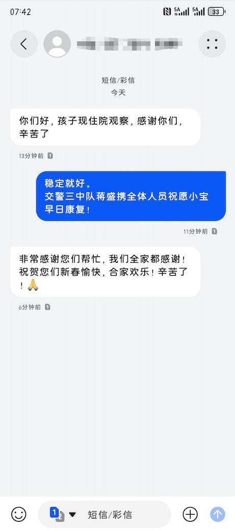 求助。接110指令,值班民辅警立即护送开道,13公里仅用12分钟送达。因抢救及时,男童已脱离危险。家属发短信致谢:“谢谢你们!”点赞生命守护者!
