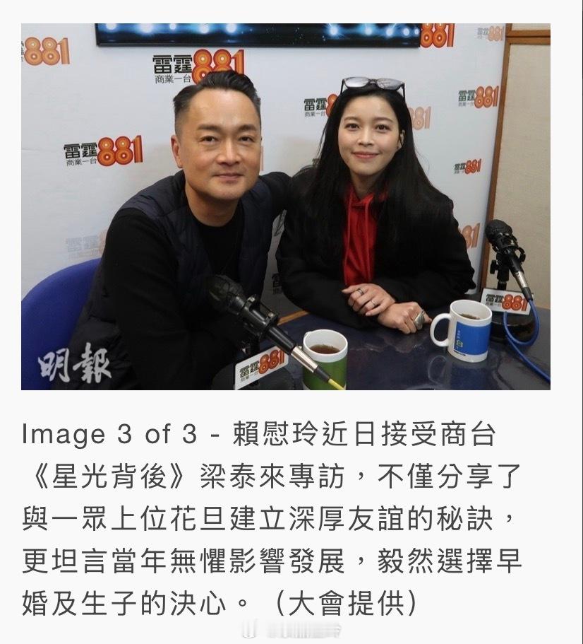 現年40歲的賴慰玲,自2014年參演劇集《女人俱樂部》後,正式由舞台劇界轉戰電視圈,至今已踏入第12個年頭。她近日接受商台《星光背後》專訪,不僅分享了與一眾上位花旦建立深厚友誼的秘訣,更坦言當年無懼影響發展,毅然選擇早婚及生子的決心。她堅定地表示:「這是我人生中最大的夢想,我從18歲起便渴望結婚生子!」