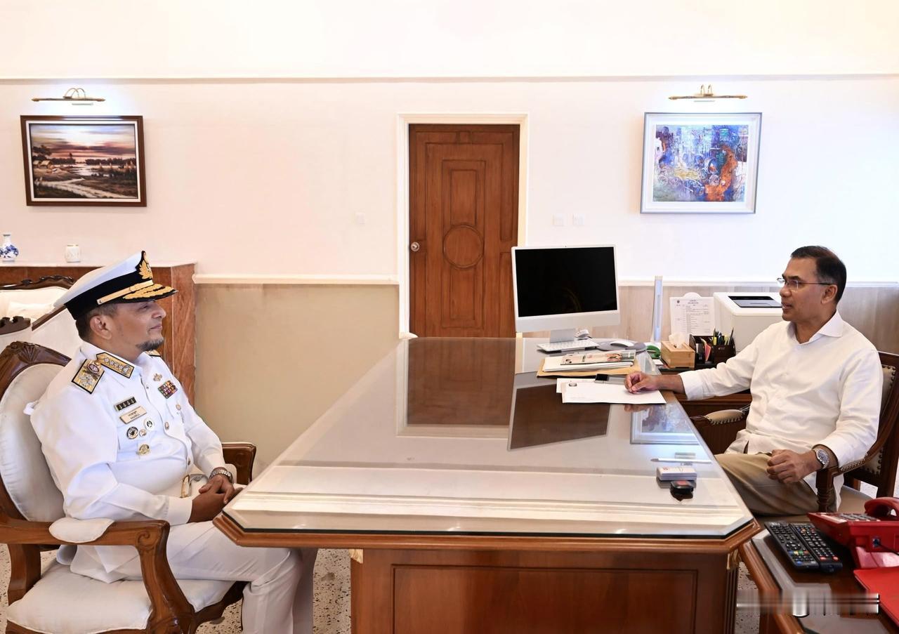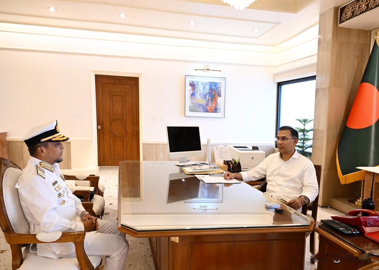 2026年2月21日,孟加拉国海军司令礼节性拜会了孟加拉人民共和国总理塔里克·拉赫曼先生。会晤期间,双方就国家水域安全、蓝色经济、海洋资源保护以及海军能力建设和现代化等重要议题进行了深入探讨。总理阁下高度赞扬了孟加拉国海军在保卫海上边界方面展现出的专业精神、爱国情怀和不懈努力。