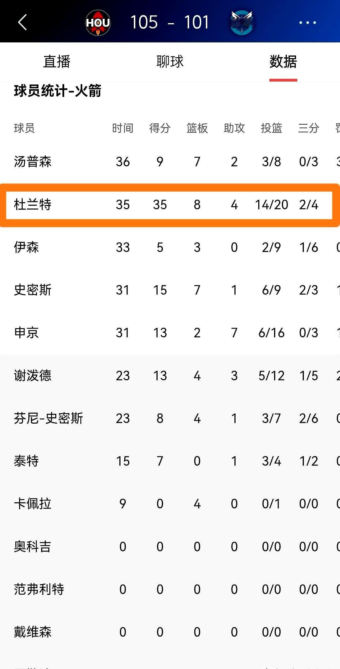 20投14中,第四节独得10分。杜兰特今晚,根本没打算给黄蜂留活路。 对面追分追得眼都红了,就差一口气。杜兰特站出来,一记中投,再一记中投,像手术刀一样精准。最后3.2秒,他站上罚球线,两罚稳稳命中,直接把悬念掐死。 谁能想到,一个月前,火箭刚被黄蜂赢了10分。今天这口气算是找回来了。全场就1个失误,还送出3个大帽,防守端也把对面安排得明明白白。 就问一句,论关键时刻的硬解能力,现役还有谁比他更狠?