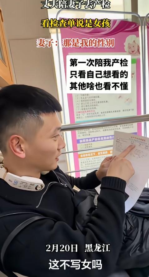 怎么办,我开始担心这孩子的智商了! 黑龙江,丈夫陪妻子去产检,检查单都看烂,指着抬头信息,说宝宝是女孩。 这丈夫,把妻子的性别当成宝宝的性别了啊!这智商堪忧了啊!别说内地禁止透露胎儿性别,这检查单上性别是男,结果是怀孕了,不是人为失误就是医学奇迹了! 建议家里买只边牧吧,有大事的时候,好歹还能商量商量。