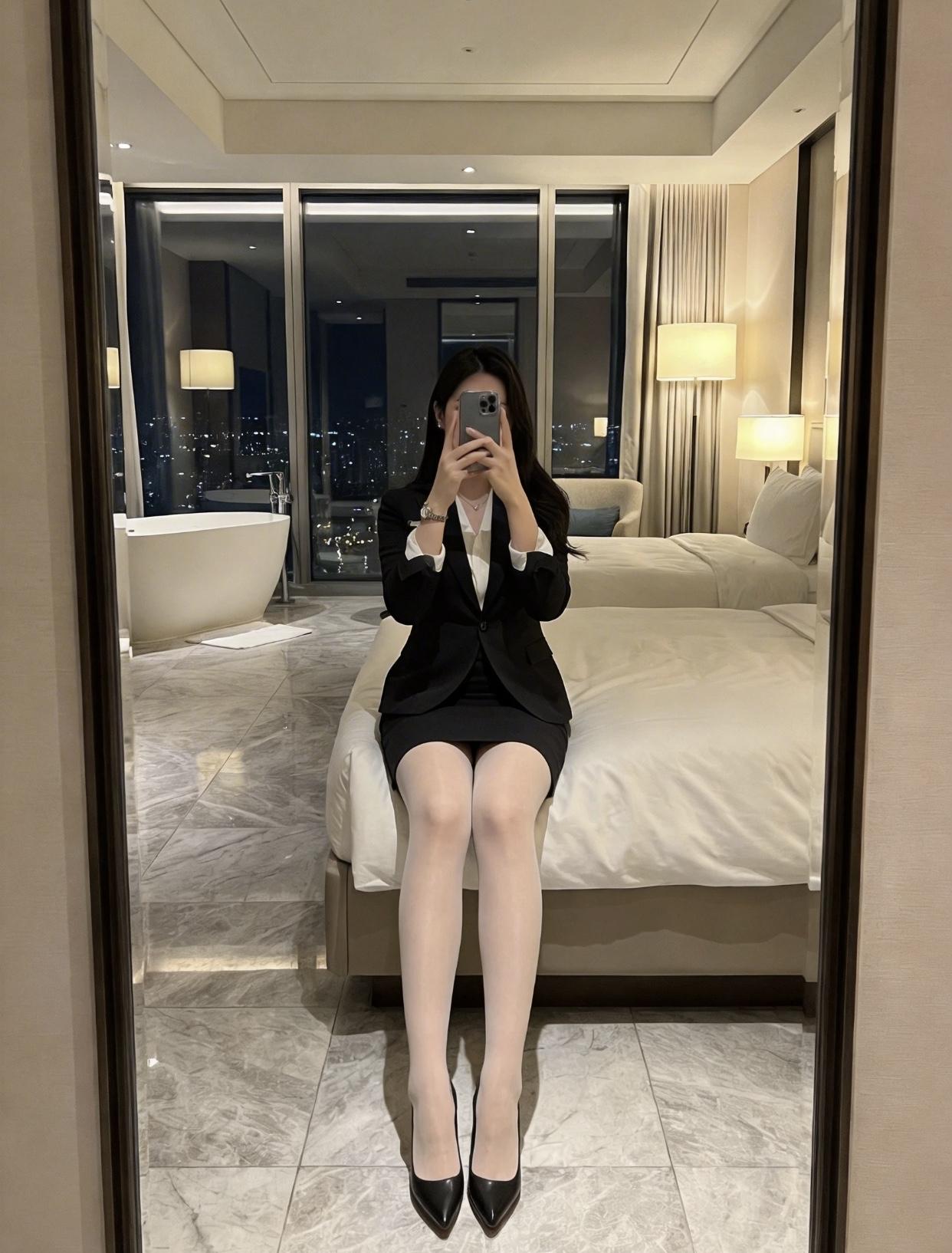 还有坐着时交叉双腿,优雅又带点神秘,让人忍不住多瞧两眼。站着穿鞋子,要是做得自然