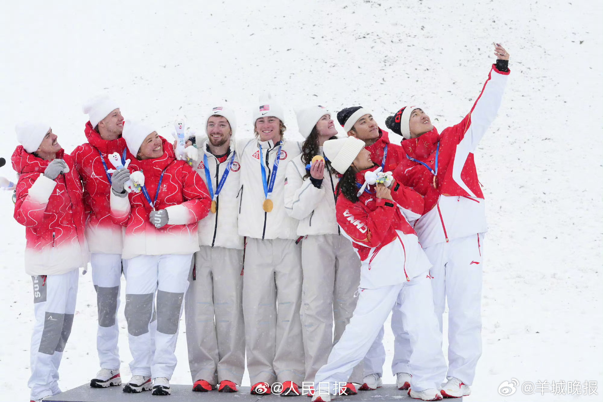 【领奖台上的他们真的很美好】自拍、欢笑、拥抱、彼此祝福……网友:#这个领奖台画面对我眼睛很好#↓↓#谷爱凌U型场地决赛推迟##谷爱凌米兰冬奥收官战##这个领奖台画面对我眼睛很好#(人民日报)(编辑:惠天骄;审签:岑杰昌)