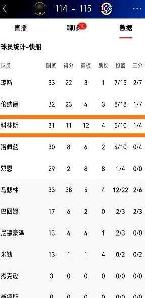 只拿11分,却把约基奇防得没脾气,这哥们才是快船的真大腿。 全场都以为快船要被掘金赛季三杀了,内线没人,眼看就要崩。结果科林斯站了出来,硬扛约基奇,篮下玩命抢板,送出3个大帽,硬是把防线给撑住了。 别光看马瑟林首秀爆砍38分,没科林斯这12个篮板和4个助攻串联,进攻根本打不起来。最后穆雷罚球不进,那都是前面一口气顶住了才有的机会。鲍尔默在场边挥着拳头庆祝,他知道赢的不是数据,是那股子劲儿。 这种数据体现不出来的蓝领硬汉,现在联盟里还剩几个?