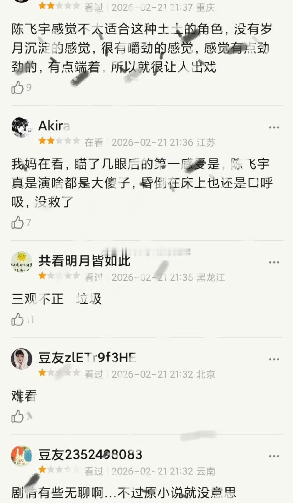 大虐,陈飞宇 孙千《纯真年代的爱情》七点半开播,热度频频负拉升可还行年代剧是爷奶最钟爱的题材,但目前收视走势甚至不如《生命树》,第2集收视就开始跌,是看了一集就跑路了吗?😅事实是不是证明,年代剧还是慎找缺乏观众基础的小生小花,演技很难经得住观众的法眼?目前已经有不少网友在说男女主选角劝 退了纯真年代的爱情