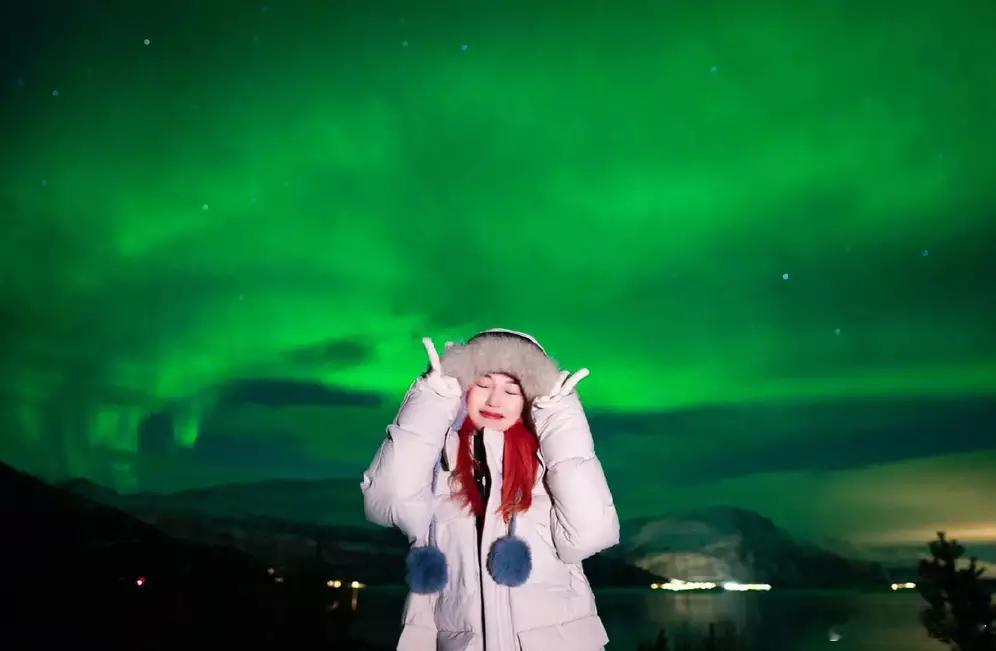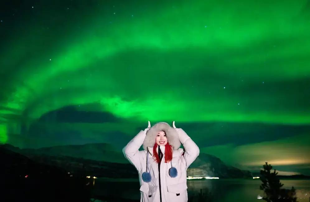 分享娱乐毛晓彤与绚烂极光同框合影好梦幻!绽放灿烂笑容心情大好