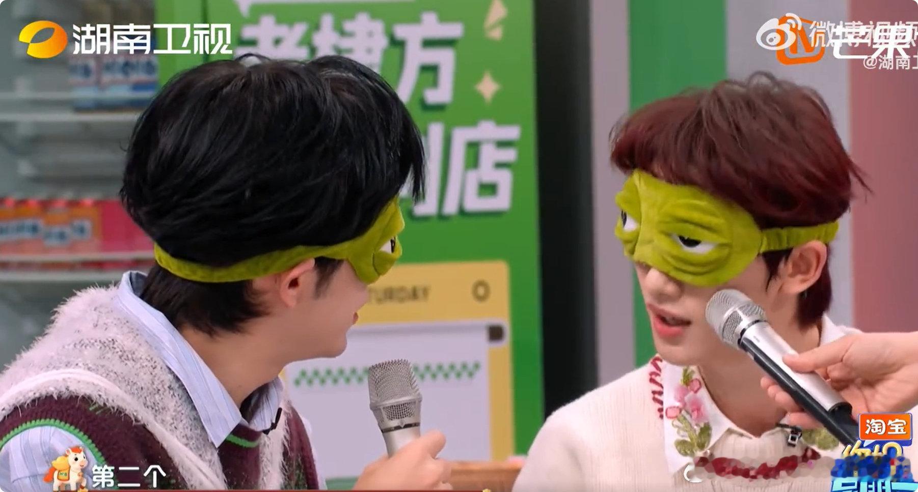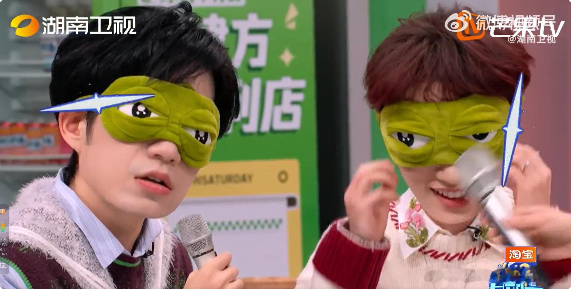 丁程鑫张颜齐好萌的两个人他俩顶着大眼蛙眼罩凑在一起,专注又呆萌,这画面直接治愈了我。你好星期六