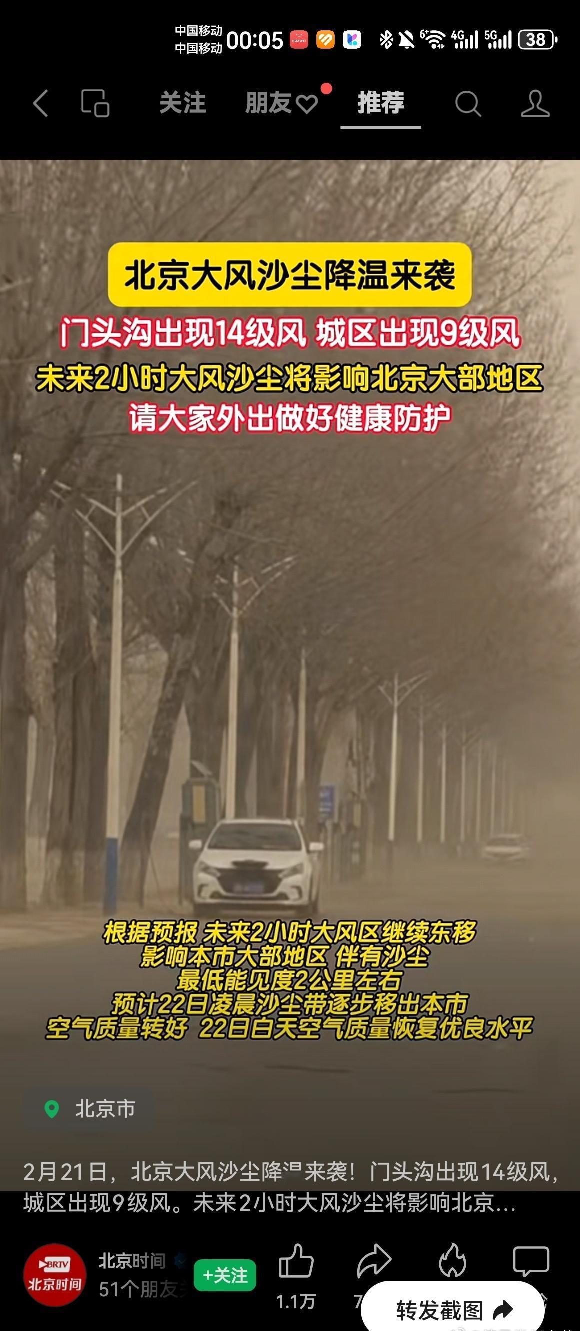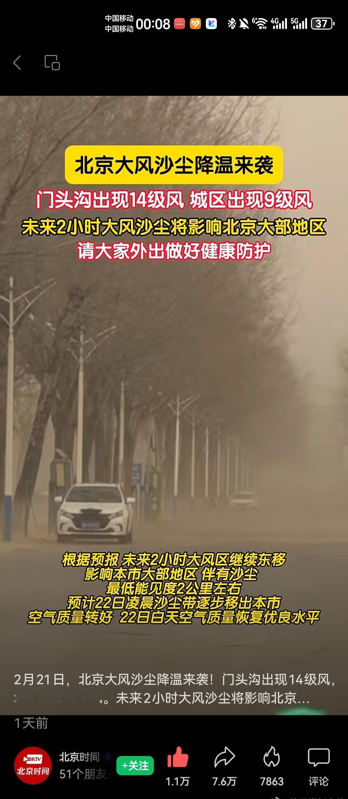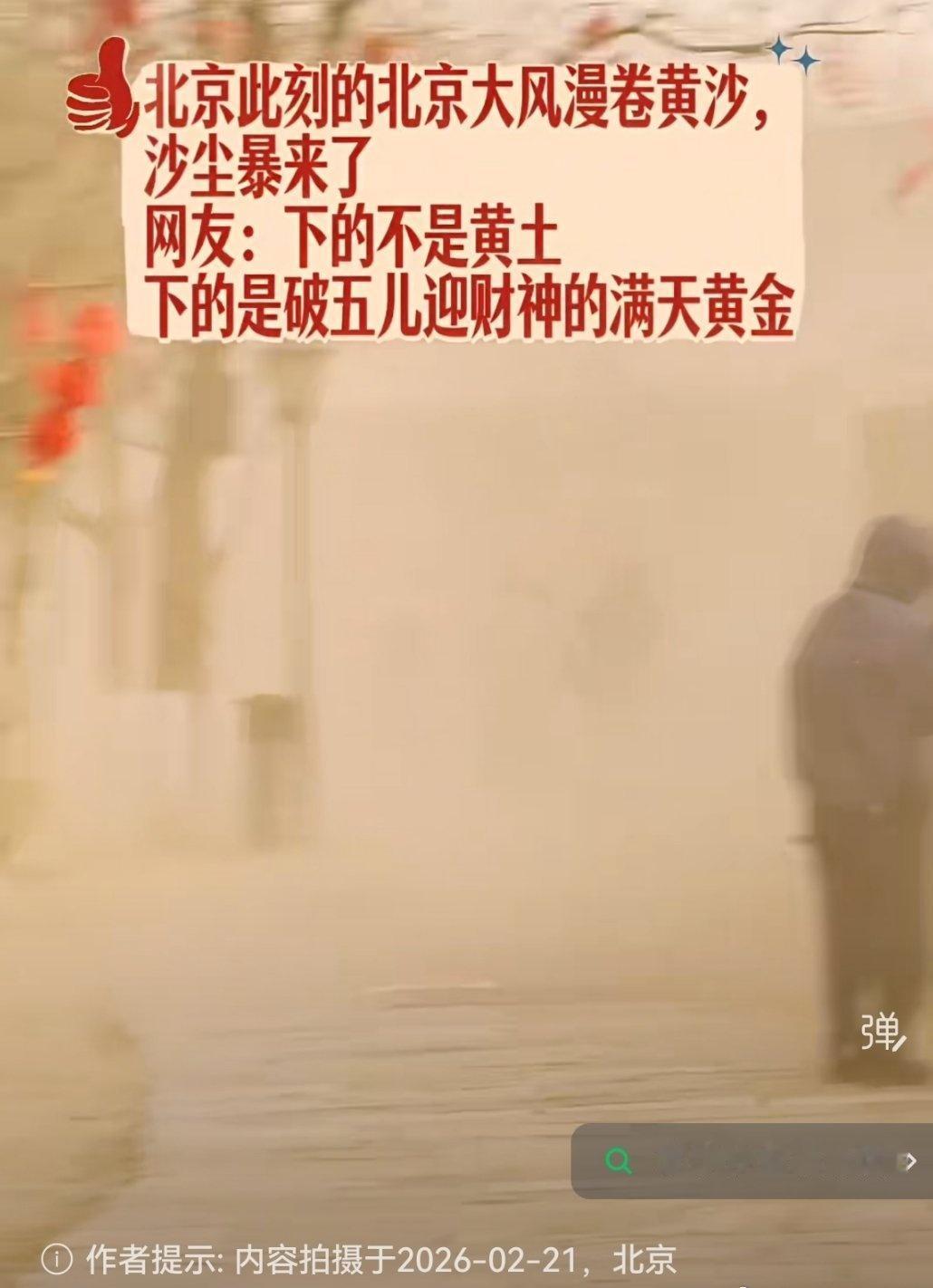 沙尘后的北京蓝上线了昨天初五迎财神,今天全城吃土,北京这天气也太会整活了,一开车