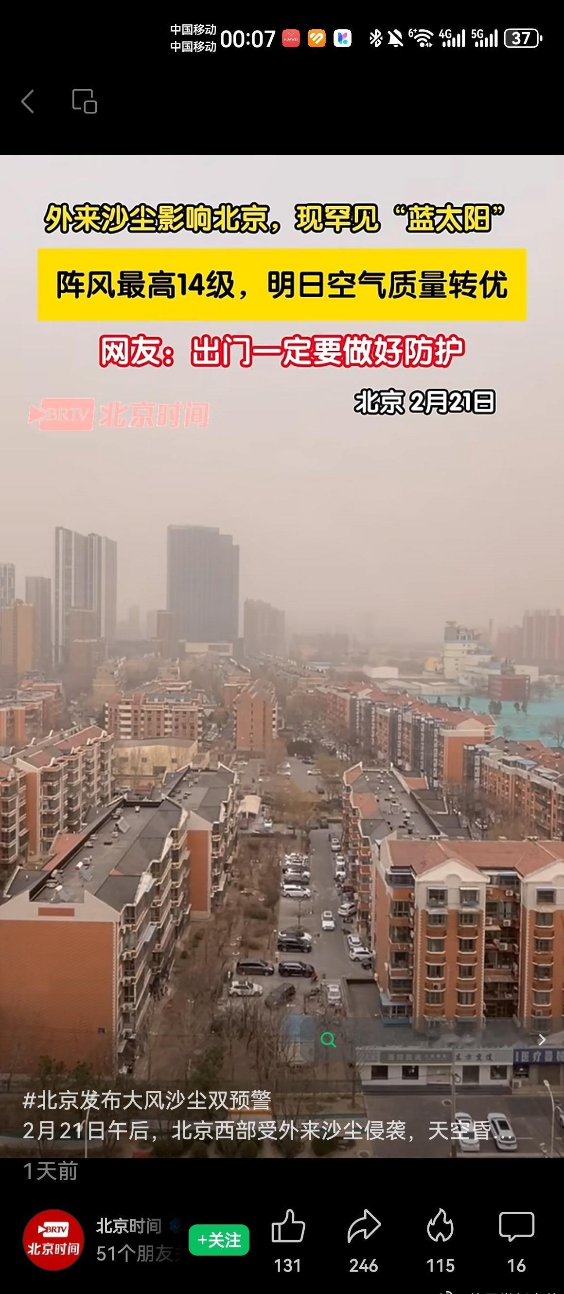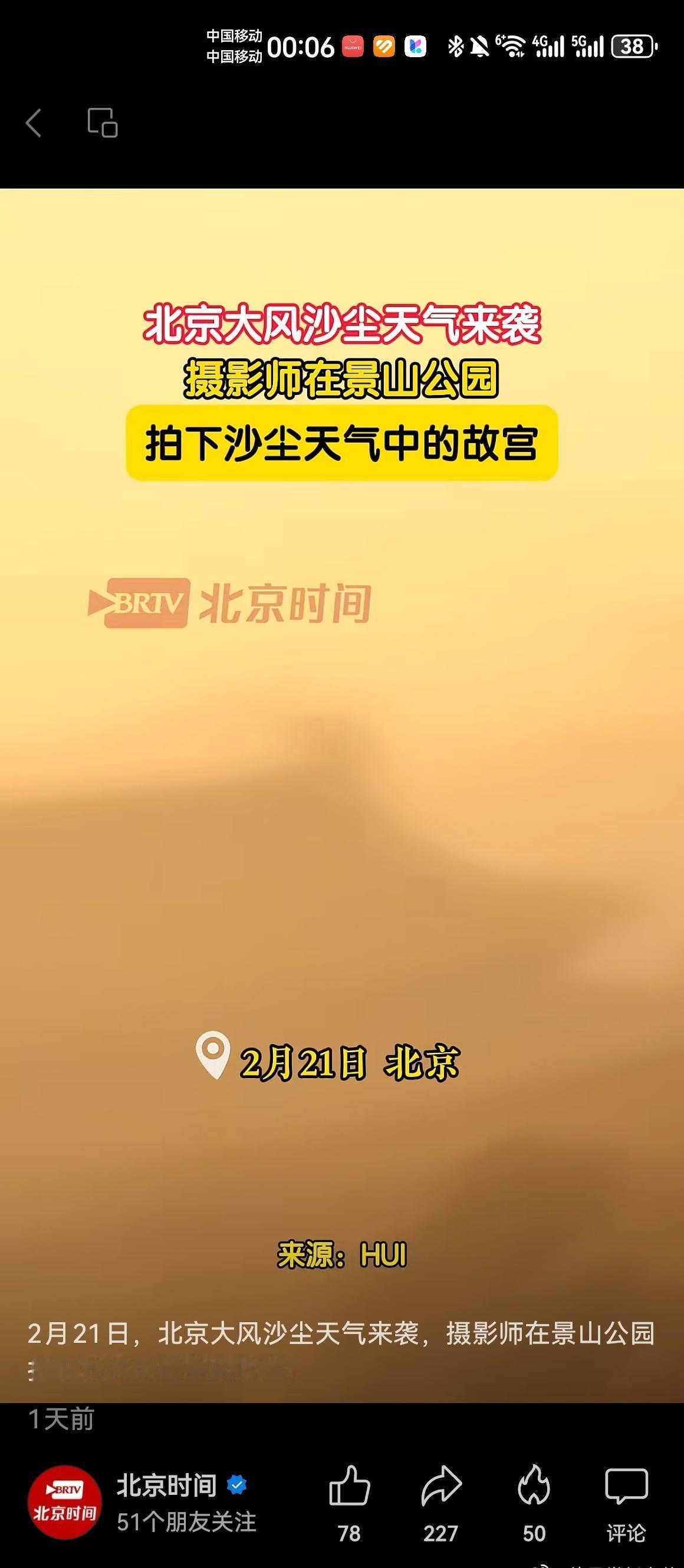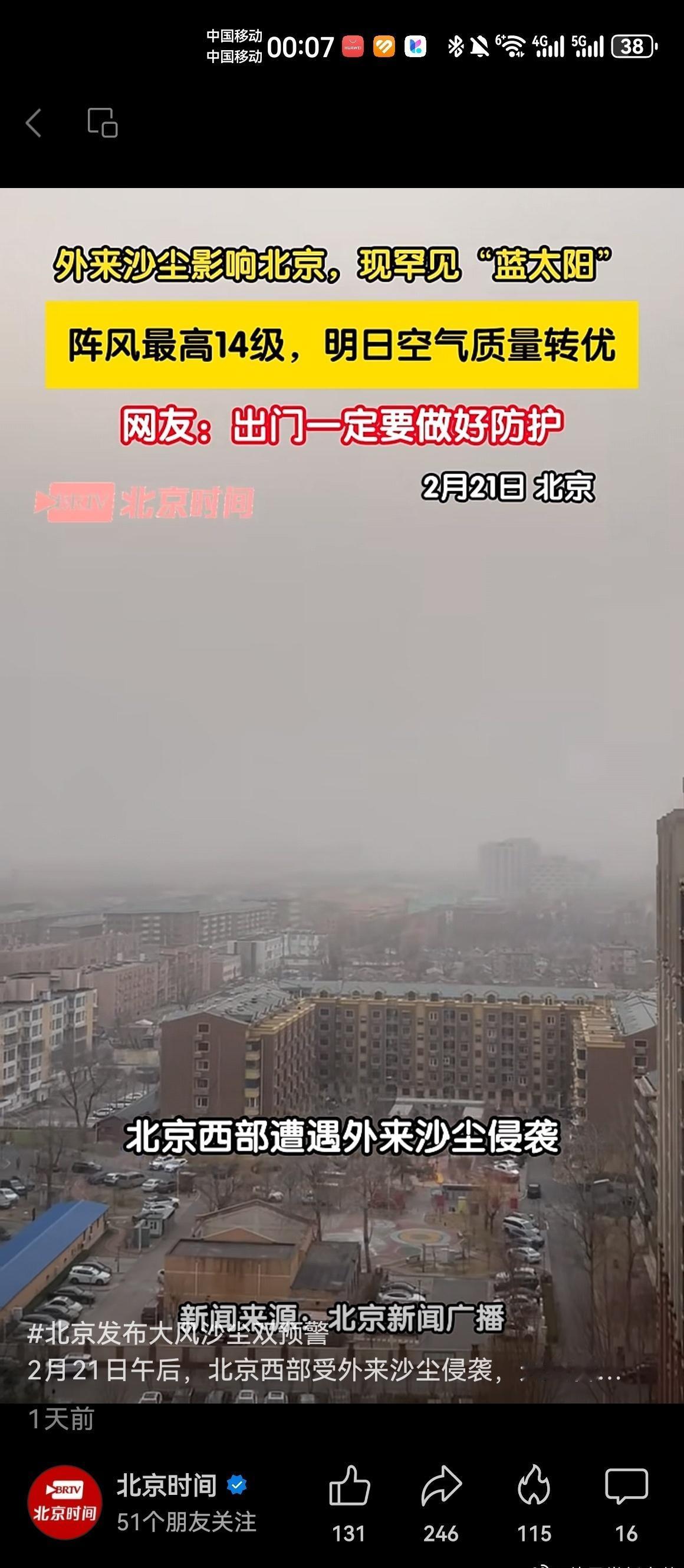 沙尘后的北京蓝上线了昨天初五迎财神,今天全城吃土,北京这天气也太会整活了,一开车