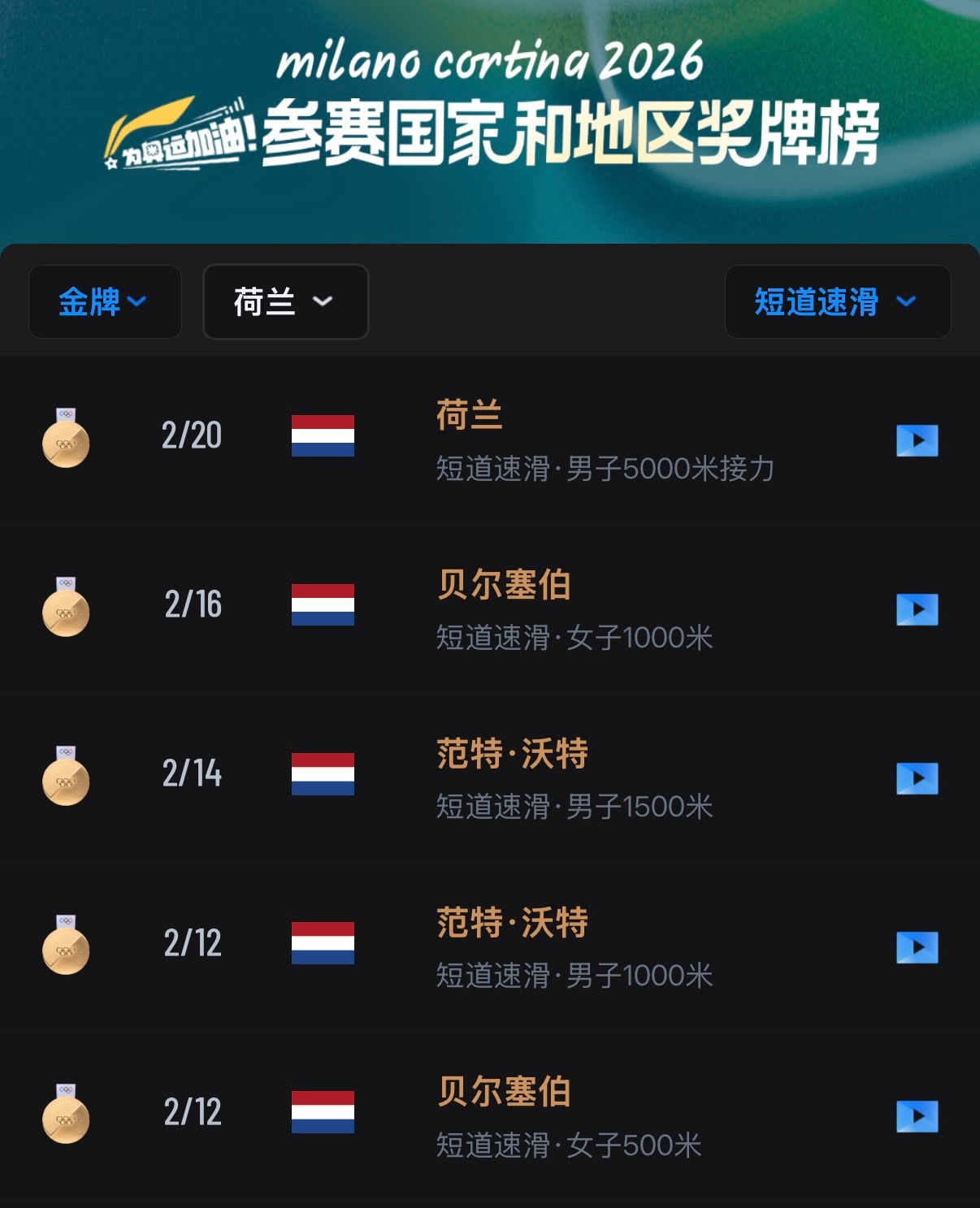 荷兰队成为滑冰项目的绝对统治者!咱们的冠军宁忠岩也在荷兰俱乐部……荷兰队所有的冬奥会奖牌都在滑冰项目,5金短道速滑、5金速度滑冰