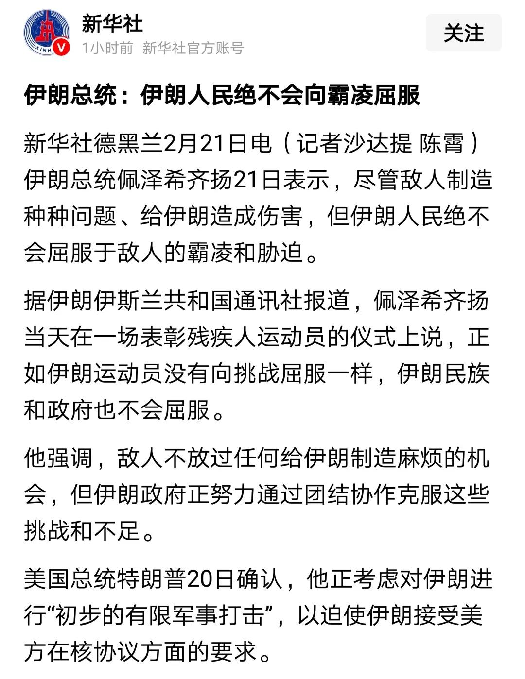 官媒力挺伊朗,说明伊朗不惊慌,不会向霸凌屈服,伊朗不是被吓大的,面对施压胁迫,该修路,照常进行,该盖房的照样进行,可以说,重压之下谈笑风生,闲庭信步,一切照旧,美帝国主义没什么可怕的,看成纸老虎就是了。