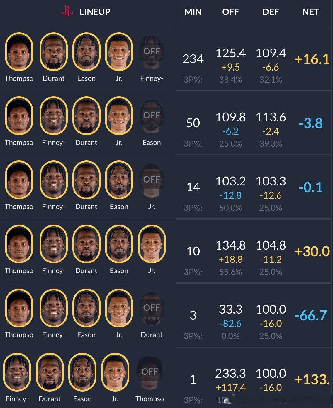 2️⃣ 火箭的“矛盾型进攻”根据最新赛季数据:进攻效率:117.0(联盟第6)防守效率:112.0(第5)净效率:+5.0(第6)节奏:96.6(第28,偏慢)