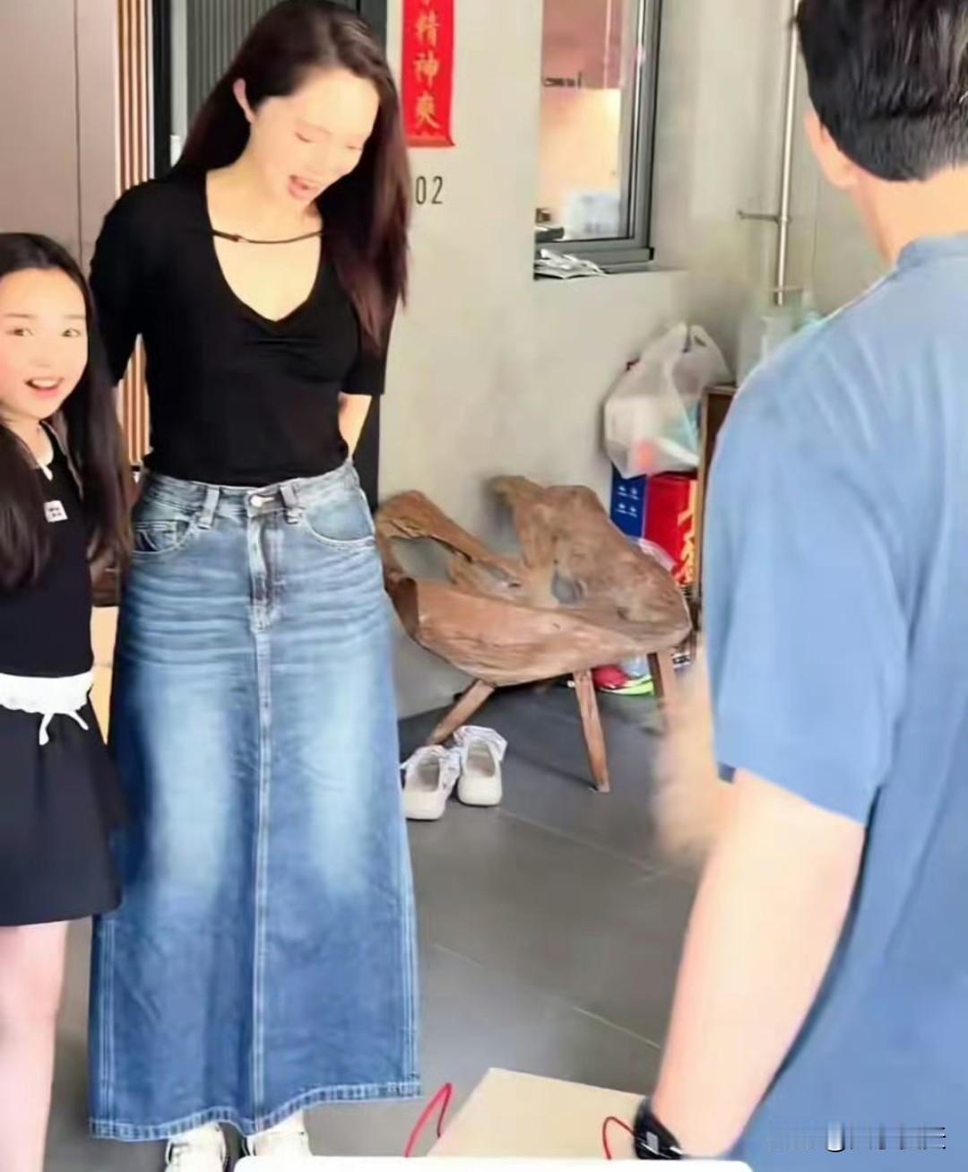 张天爱跟素人合影,胯真的好宽,大宅院似的