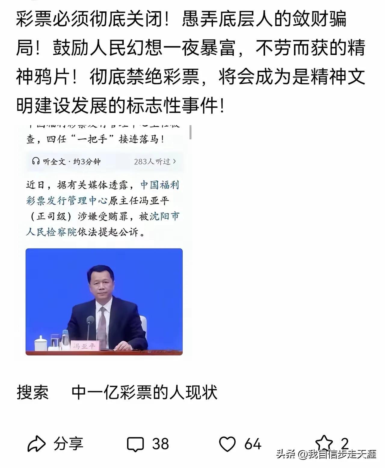 不知道你发现没有,网上只要一骂彩票造假,流量立马就来。 可很多人根本没搞清楚,之前福彩相关人员出事,和开奖造假完全是两码事。 彩票是国家正规发行的,本身就是概率极低的游戏,几千万分之一的几率,没中才是常态。 我买了几十年,也从没中过大奖,但从来不会乱怀疑。 连二选一都能选错,没中奖,真的只是运气没到,不是什么暗箱操作。 别被带节奏,更别拿怀疑一切当清醒。理性看待,小买是乐趣,沉迷才伤身。