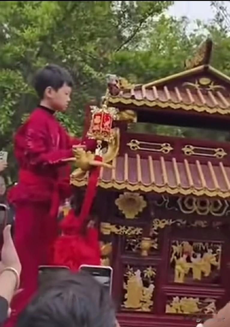 妈祖推不动瞬间,舞狮迈不动腿轿子抬不动,孩子懵懂无知,状态不灵动! 有点木纳不会配合表演,而每年队伍过路时,围观村民需要神明附身祈福赐福等的仪式仪轨在这个孩子身上得不到体现,于是指指点点议论纷纷造成了影响不认可,无法提供心理和精神上的蔚藉,只能说这个孩子不是吃这行饭的,还是很单纯的一个孩子。 最可怜的这小男孩,这一生都有阴影,以后的日子在学校同学的质问、调侃、疏远下,他该如何面对。成人的交易,让两个孩子争夺,真是令人无语