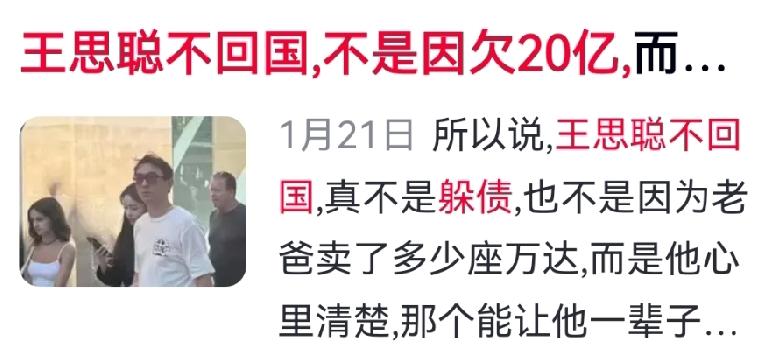王思聪不回国,根本不是因为欠债。 很多人以为他是欠了20亿躲在外面,其实早在2019年底,熊猫互娱的纠纷就已经和解。北京二中院通报过,他从未被限制出境,想回随时能回。 他不回,是不想、也不必回了。 真正的原因是:那个能护他一生无忧的万达帝国,已经光环褪去。王健林身陷债务和對赌,断臂求生卖掉资产,自顾不暇,再也无力为他兜底。 回国意味着什么?舆论的显微镜、无休止的评判、商业规则的刚性约束。而他留在海外,反而是双向成全——既减轻万达的舆论负担,让父亲专心处理危机,也为自己守住一份体面和安宁。 这不是逃避,是看清局势后的理性选择。 能护他周全的时代已经落幕。不回国,是他当下最稳妥,也最体面的路。 对此你有何评论? 王思聪 王思聪商业失败 深圳王健林