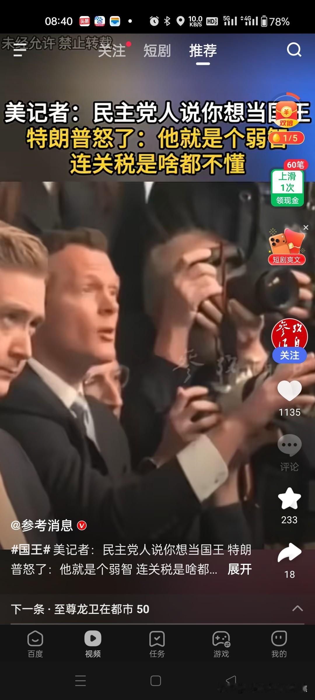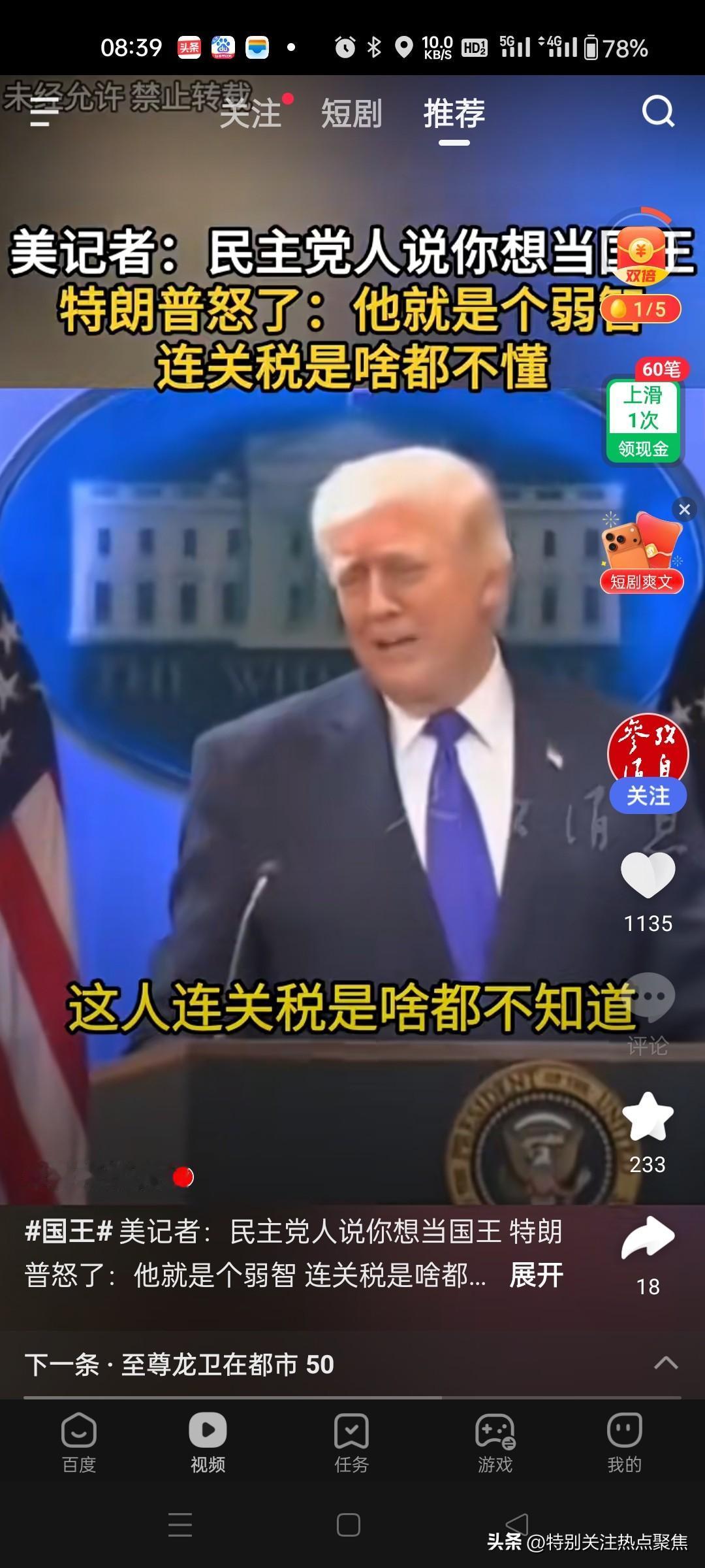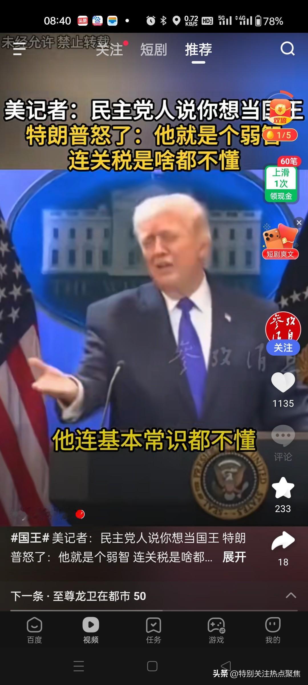 美国大法官也窝囊美国总统特朗普怒斥他们是 “傻瓜和走狗”,称其“非常不爱国”,甚至暗示他们被“外国利益”操控。法官们可治特朗普藐视法庭罪 特朗普这次确实“破大防”了。就在昨天(2月20日),美国最高法院以 6:3 的票数裁定他依据《国际紧急经济权力法》征收的全球关税违法,直接打脸了他的核心经济政策。 ⚔️ 骂战升级:从“傻瓜”到“走狗” 特朗普在白宫记者会上火力全开,直接点名批评了投票反对他的6名大法官: * 人身攻击:怒斥他们是 “傻瓜和走狗”,称其“非常不爱国”,甚至暗示他们被“外国利益”操控。 * 点名“叛徒”:特别点名了由他亲自提名的两位大法官——戈萨奇和巴雷特,称他们的行为是“家族的耻辱”,并暗示自己后悔提名了他们。 💥 裁决核心:总统权力被“削权” 这次裁决之所以让特朗普暴怒,是因为它直接挑战了总统的行政权力边界: * 法律依据被否:法院认定,宪法将征税权明确赋予国会,总统不能单方面以“国家紧急状态”为由随意加征关税。 * “叛变”的保守派:在9名大法官中,保守派占6席,但这次却有3名保守派(包括特朗普提名的2人)倒戈,与自由派一起投了反对票,这让特朗普感觉被“自己人”背刺。 🛠️ 特朗普的反击:换条路继续收税 虽然输了官司,但特朗普并没有认输,他立刻宣布了 “B计划”: * 新行政令:签署命令,依据《1974年贸易法》第122条,对全球商品加征 10% 的关税。 * 绕开国会:虽然新法律路径有150天的限制,但特朗普表示“我们几乎有权做我们想做的任何事”,暗示将继续寻找其他法律工具来维持高关税。