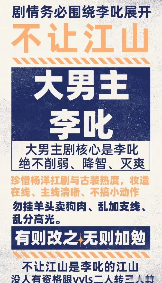 杨洋新剧《不让江山》正式官宣阵容,男女主角敲定杨洋与周洁琼,翟子路、夏浩然加盟饰演男二、男三。然而剧集刚开机粉丝便发起大规模维权剧本中男主戏份被大幅删减,不少高光情节转移给了男二、男三,连女主戏份也有所缩减。