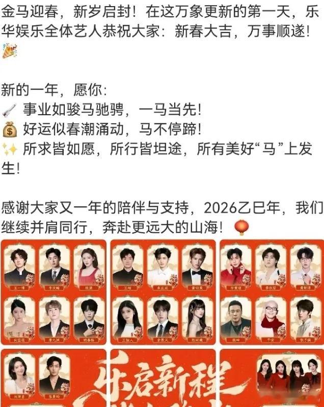 2026年2月16日,乐华娱乐发布新春贺岁视频和贺图,程潇、王一博等艺人出镜送祝