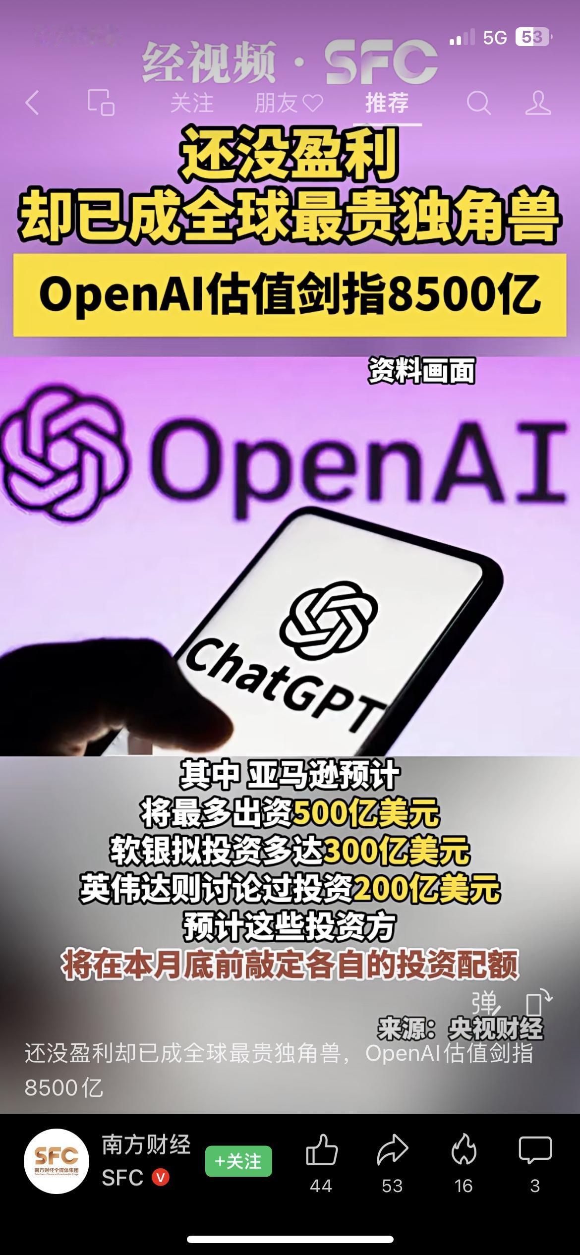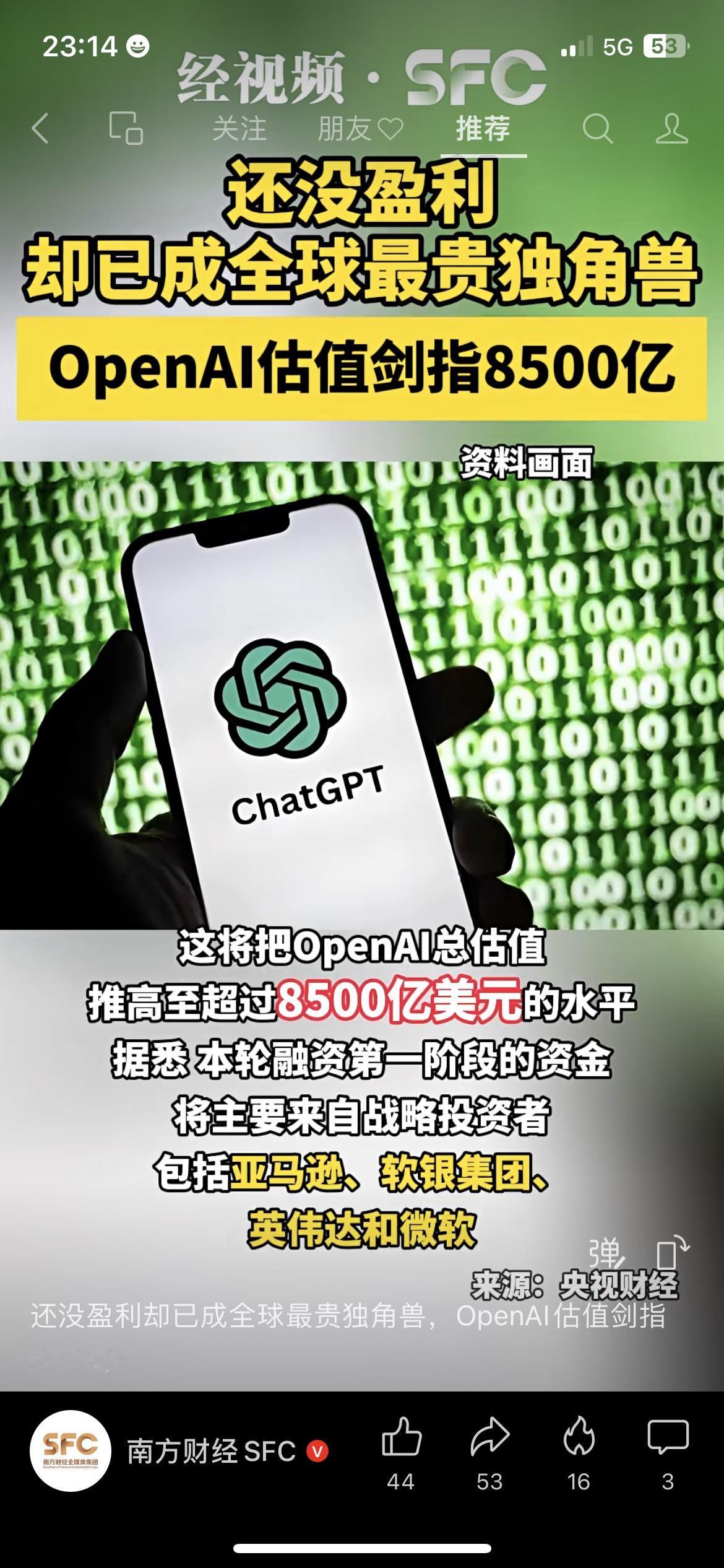 OpenAI这事儿真的颠覆了我对“赚钱”的认知: 还没盈利,估值却干到了8500亿美元,成了全球最贵独角兽 亚马逊要砸500亿、软银300亿、英伟达200亿,第一阶段融资就超1000亿 • 彭博社说,它最快要到2029年才能扭亏为盈 咱普通人看不懂没关系,但要记住: 现在资本疯抢AI,不是看它当下赚不赚钱,而是赌它未来能不能定义整个科技赛道。 这对我们的钱袋子有啥影响? 手里有AI相关基金/股票的,短期波动会很大,别追高 想入行的,别只盯着ChatGPT,算力、芯片、数据标注这些“卖水人”才是真稳 ⚠️ 市场有风险,投资需谨慎。 OpenAI AI投资 科技赛道