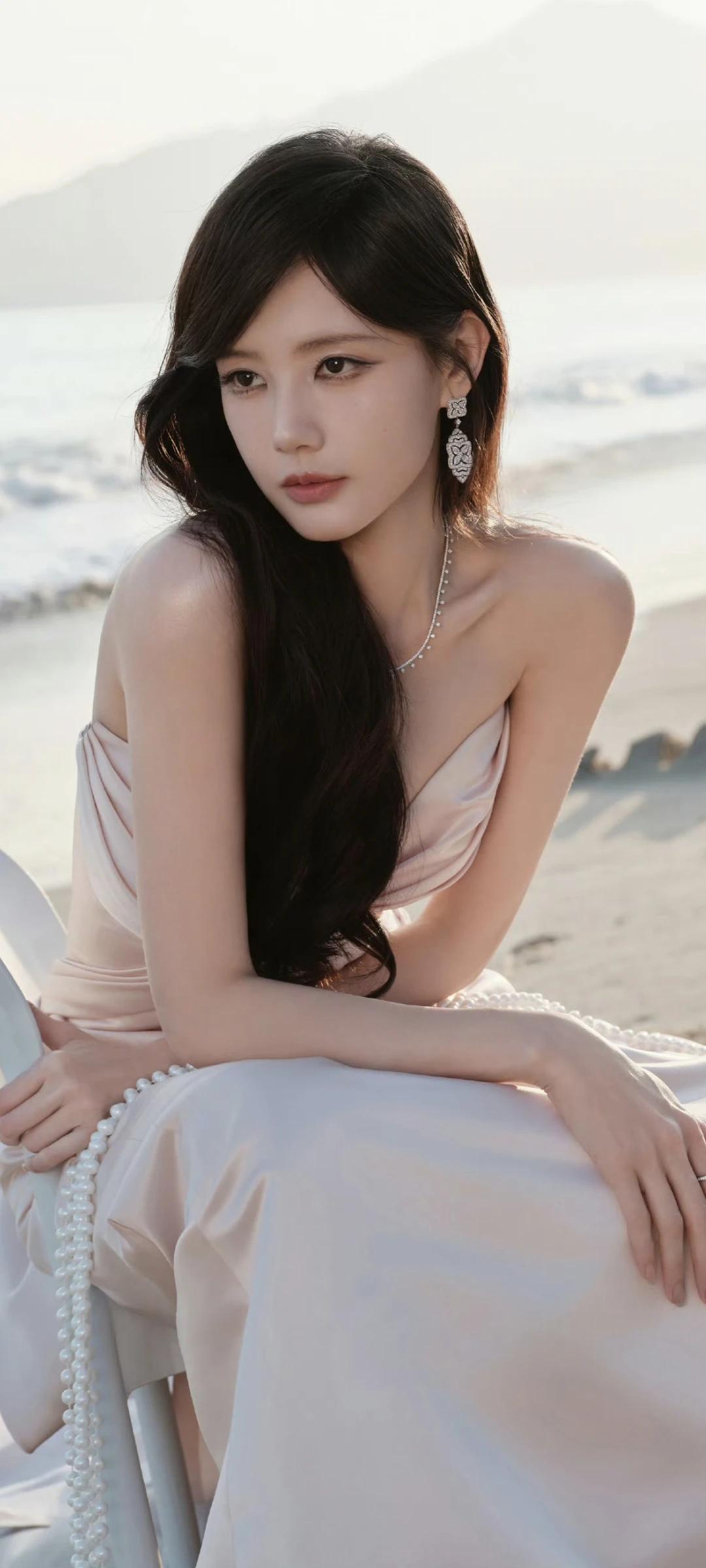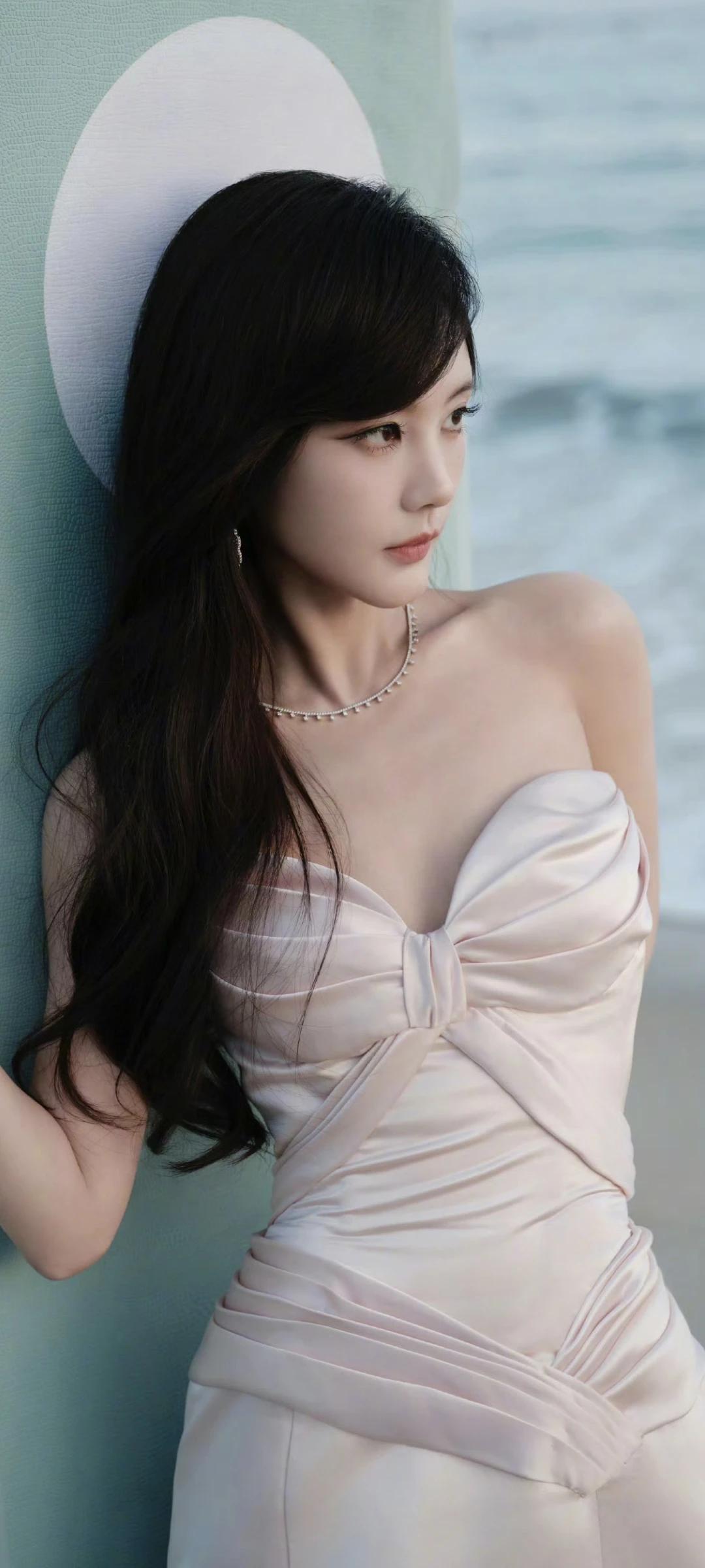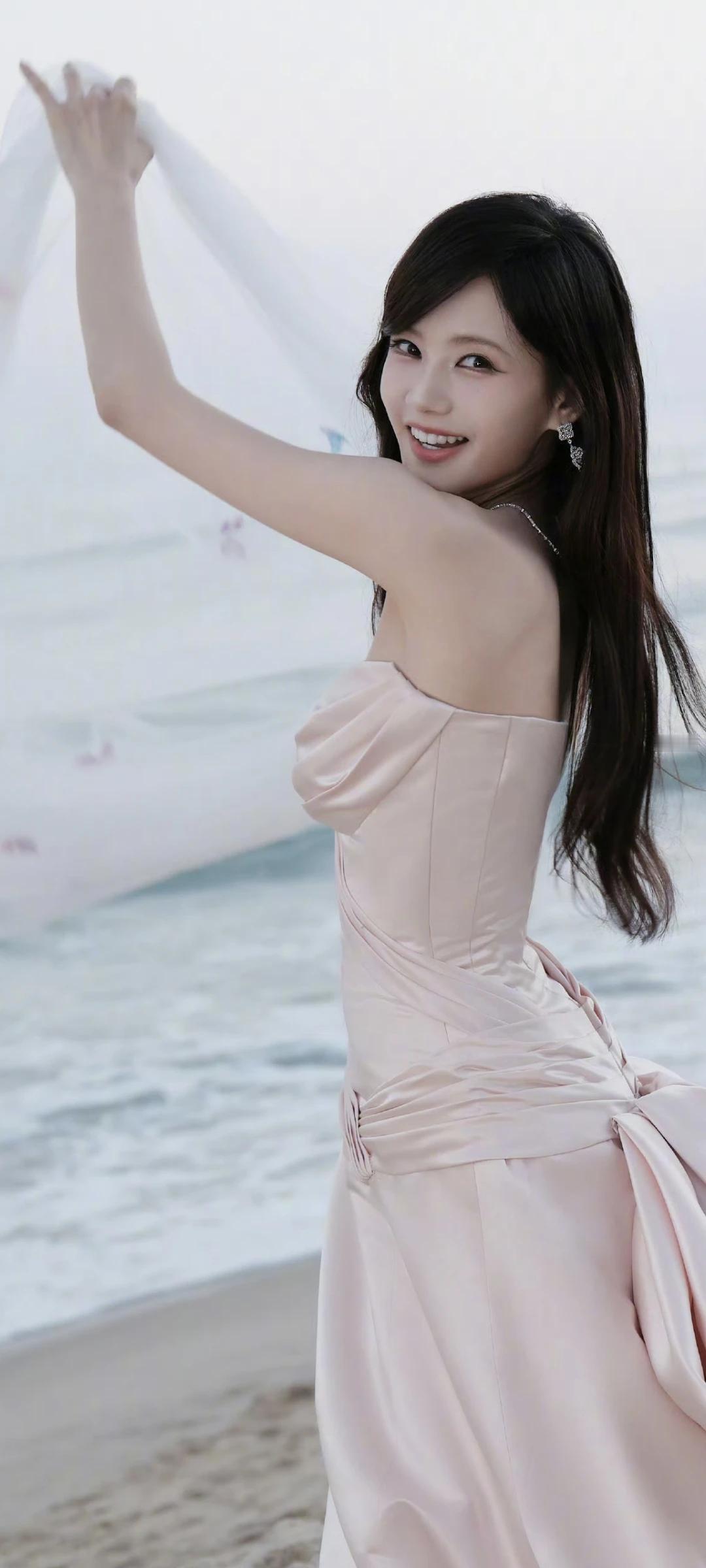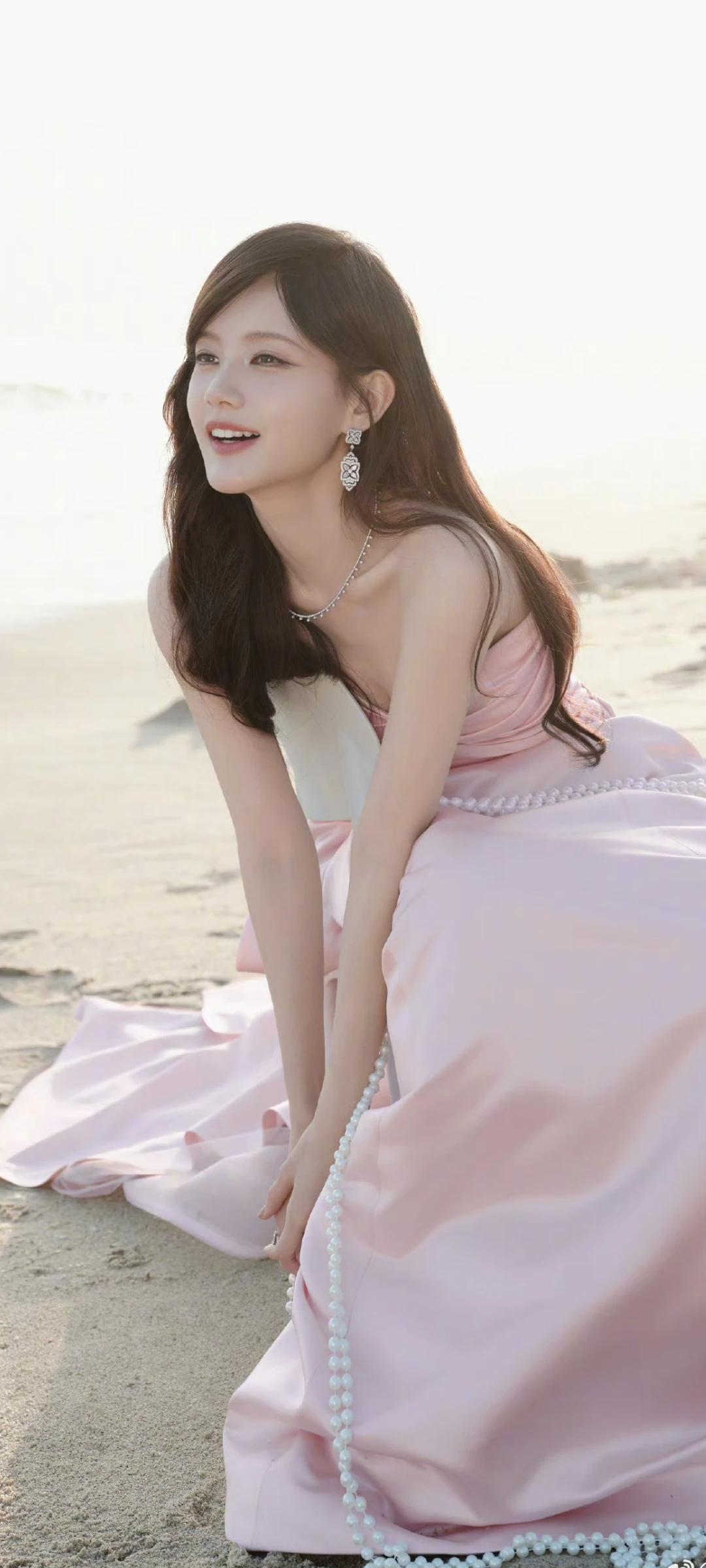 李一桐壁纸~一袭裸粉礼裙,长发随海风舞动温柔又治愈。 记录我的2026