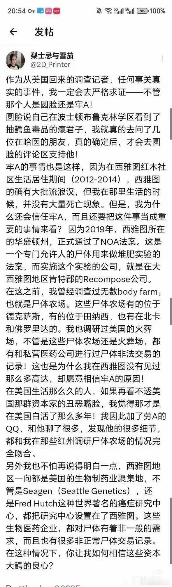 有个博主说他为什么相信牢A说的事情是真的,因为2019年西雅图所在的华盛顿州通过了NOA,法案,允许用人类尸体做堆肥实验。。。。。。