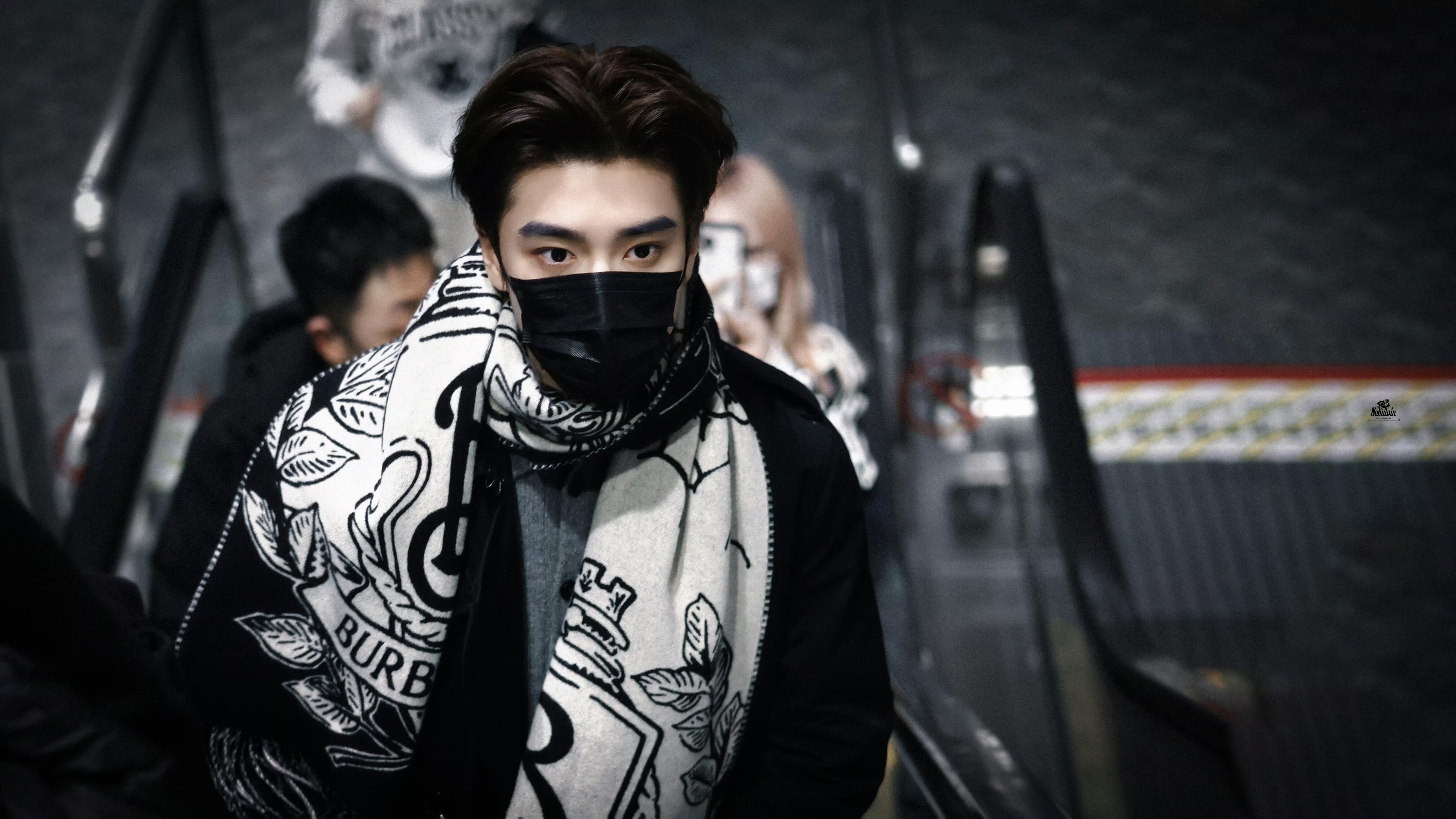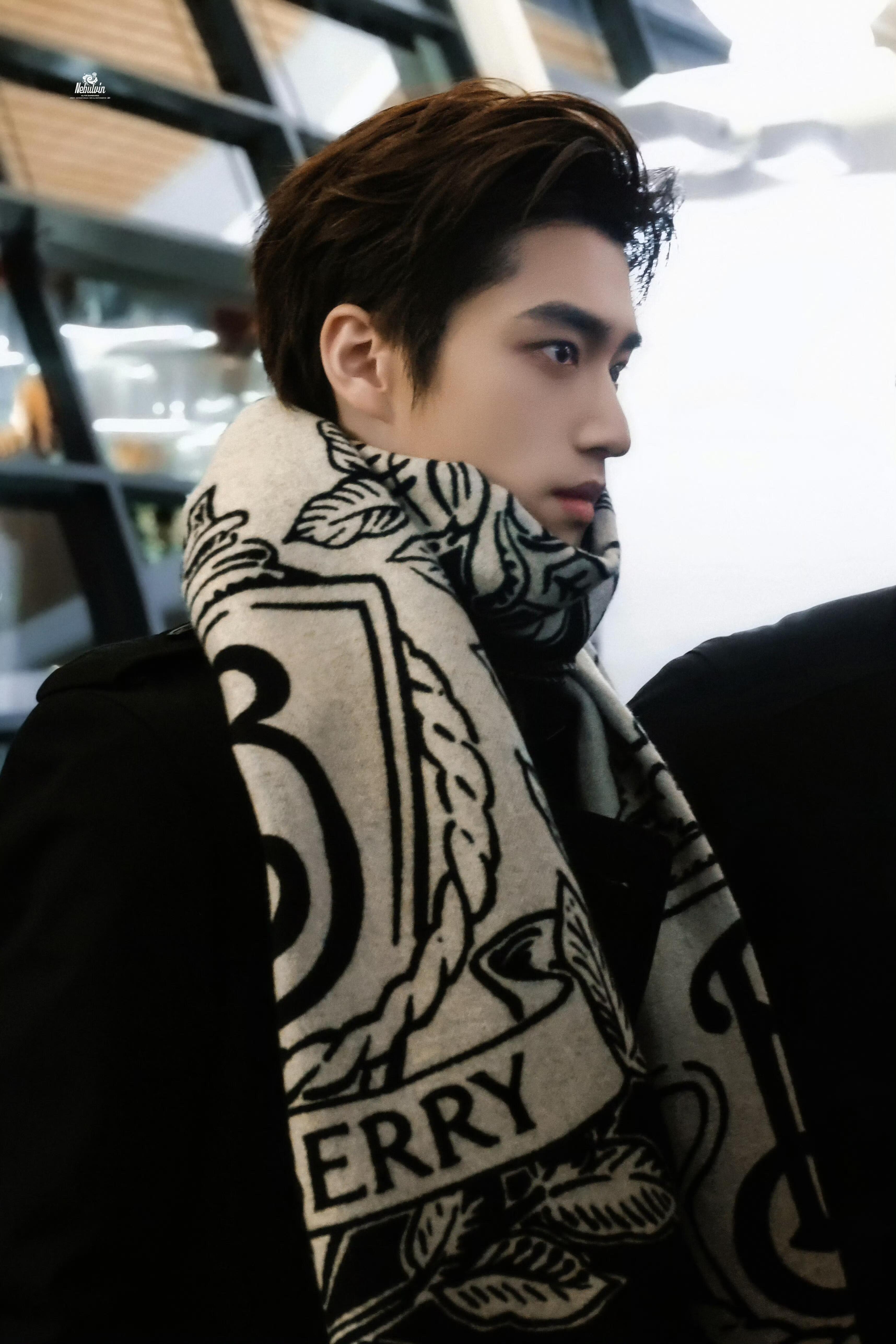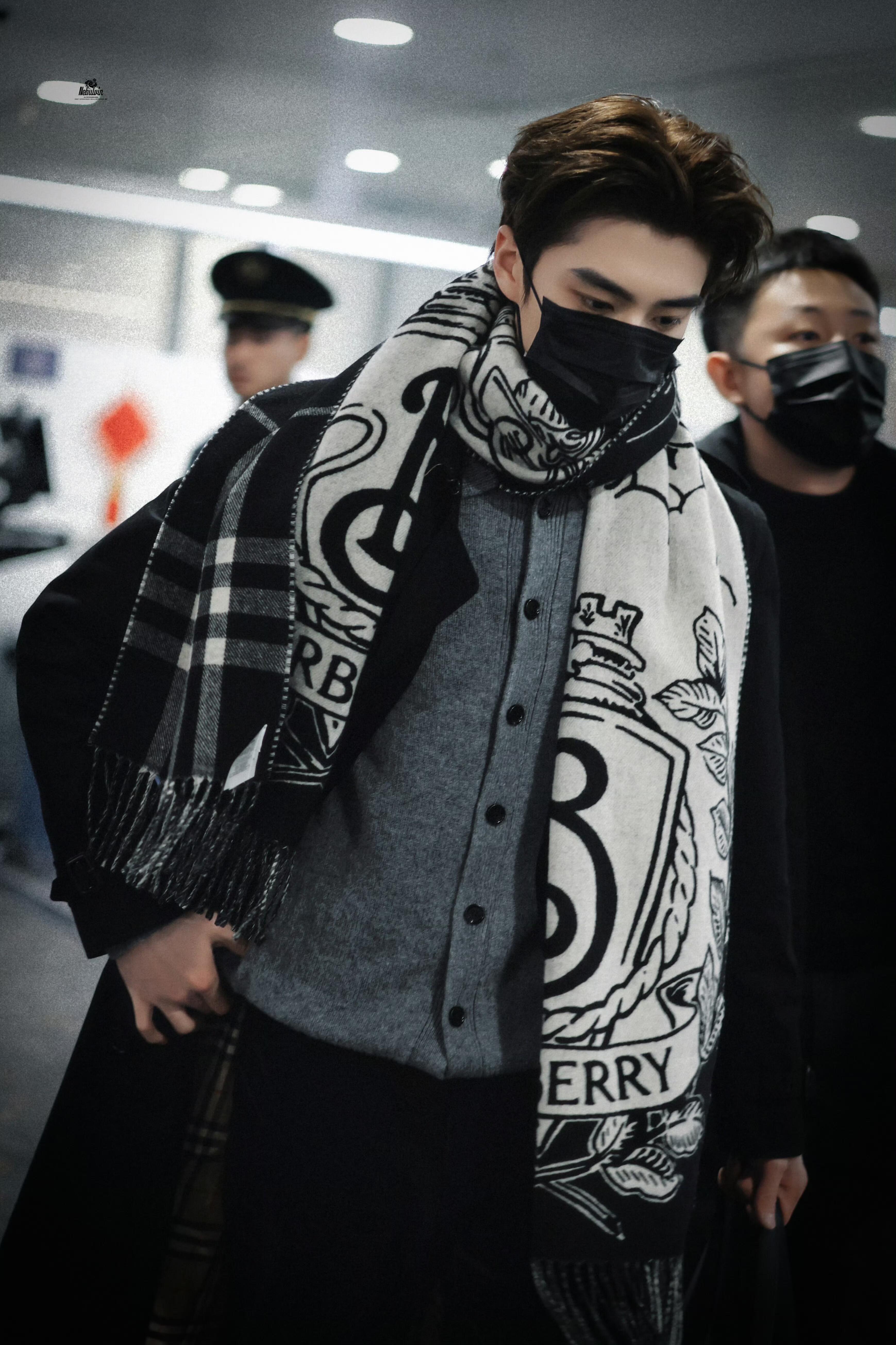 时装周伦敦时装周模登日记 张康乐机场look,一身Burberry经典黑色长款大衣,搭配品牌标志性徽章围巾,低调高级,英伦格调拉满。
