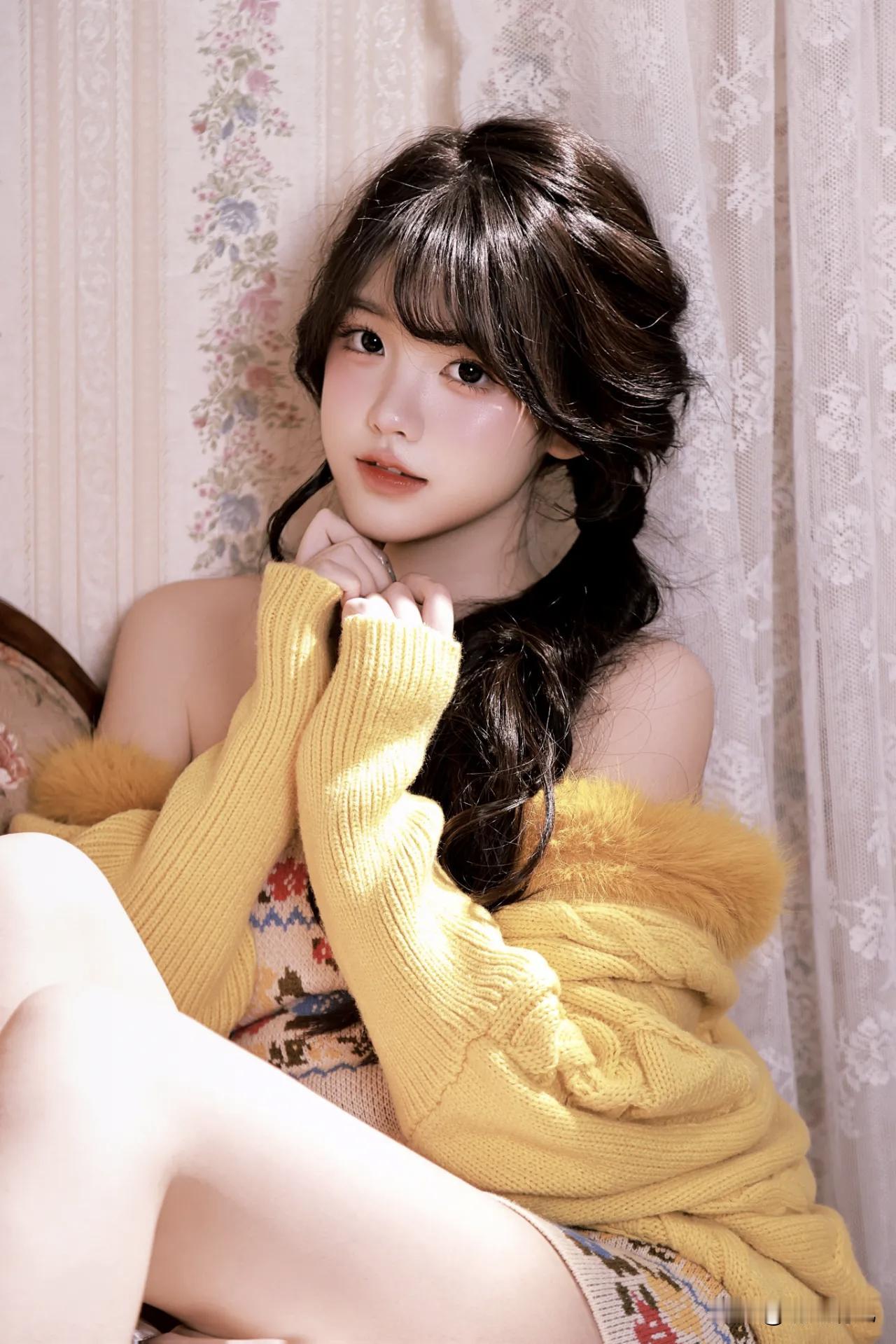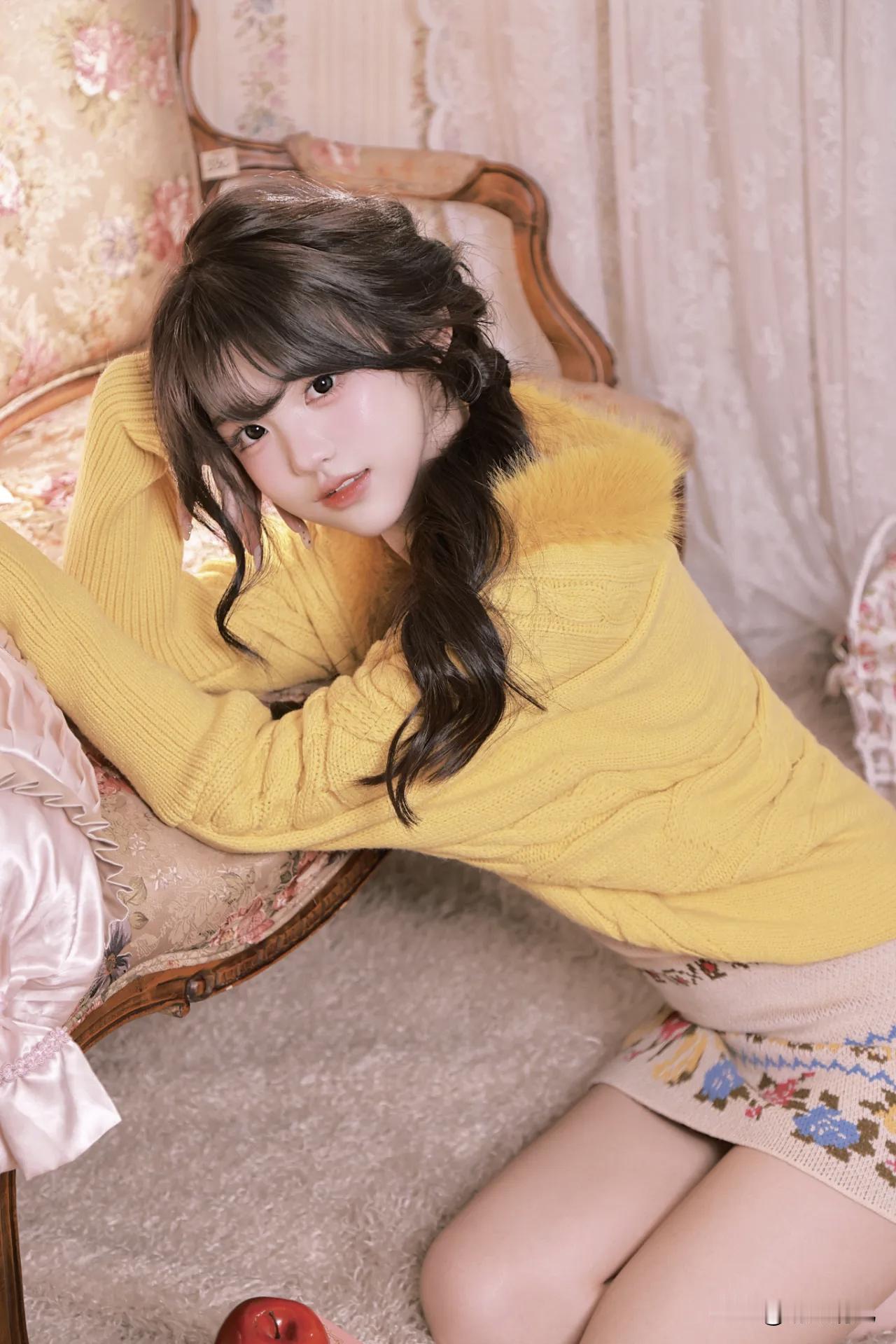 刚刚拍了一组新年写真,太满意了! 橙黄毛衣配碎花吊带裙,就窝在窗边,下午三四点的阳光斜进来,把毛衣的绒感照得蓬蓬的。 最喜欢这张趴靠沙发的。姑娘俯下去,手臂往前伸,一只手托着脸压在头发里,另一只手随意搭着,袖口堆得厚厚一截。她眼睛从下往上看镜头那一下,有点无辜又有点乖,发丝顺着肩膀垂下来。 光刚好描在发尾和肩线上,后面沙发窗帘慢慢虚掉,整张照片一下子就暖了。 这光抓得真准,脸上光线特别柔,完全不是摆拍的感觉。背景用了碎花墙纸加蕾丝帘,干净不乱。 拍了六组动作,但这张最戳我。你们觉得怎么样? 集卡领红包新年写真 拍照动作