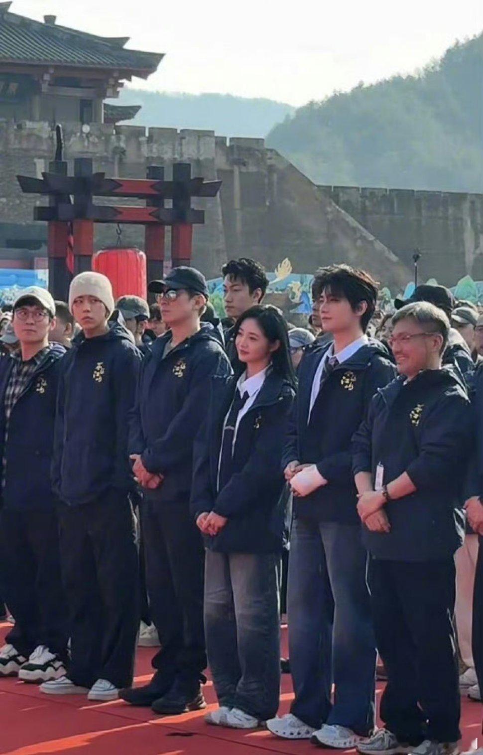 张天爱跟素人合影,胯真的好宽,大宅院似的
