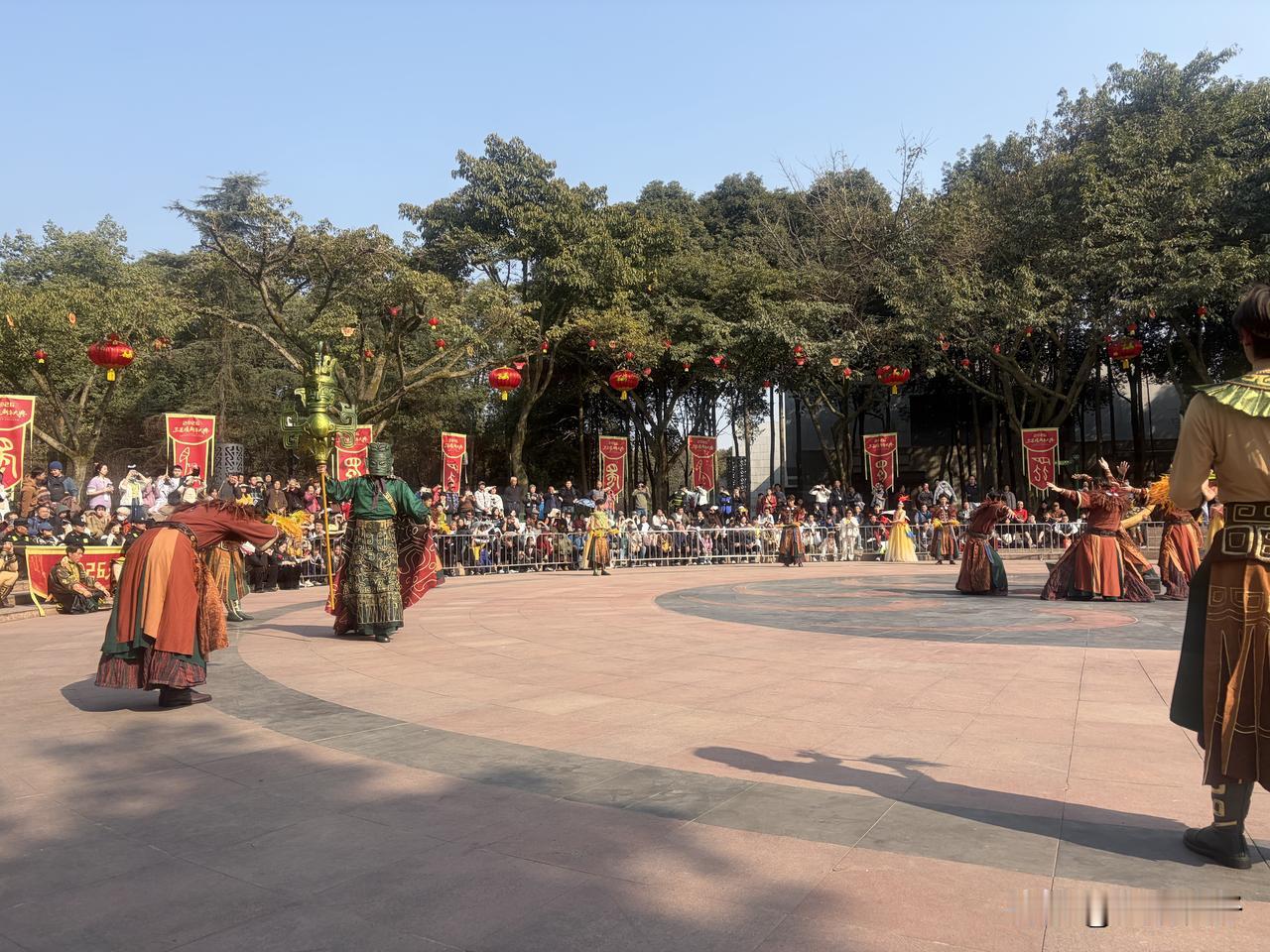 金乌凌空,十日同辉,愿光明普照,福泽绵长! 岁序更替,华章日新。在三星堆这片神秘而厚重的古蜀大地,一场盛大的“祈福盛典”如约而至,汇聚八方来客,共许新年美好心愿。 号角声震,穿透千年时光。祈福游行的帷幕徐徐拉开,头戴青铜面具、手持法器的大祭司昂首阔步,威仪万千;古蜀国王与王后华服加身,庄重凛然,缓步随行。身后,由近百名演员组成的祈福仪仗浩浩荡荡,金乌振翅、神树通天、纵目面具威严凝望——经典的古蜀图腾交错闪现,在激昂古乐与飒爽舞姿的共振中,将古蜀文明的庄严与浪漫演绎得淋漓尽致。 整场游行严格遵循“祈神出征—迎神奉神—祈福盛典”的三部曲叙事,步步深入,层层递进,仿佛将我们带回那个神明与人间共存的年代。大祭司率领众人完成迎神、奉神的传统礼俗,仪式感十足,千年文化记忆在这一刻变得触手可及。 而当所有演绎人员与现场游客齐齐合掌、闭目祈愿,那一刻,是整场盛典最动人心弦的瞬间。古老的回响,与当下的期盼,在这一刻悄然交融。我们仿佛穿越了三千年的时光,与古蜀先民并肩而立,共同仰望同一轮太阳,许下同一个关于平安与希望的心愿。 愿2026,风调雨顺,家国安康,心中有光,脚下有路。愿这份从古老文明中传承而来的精神慰藉,在新的一年里,护佑你我,步履不停,生生不息。