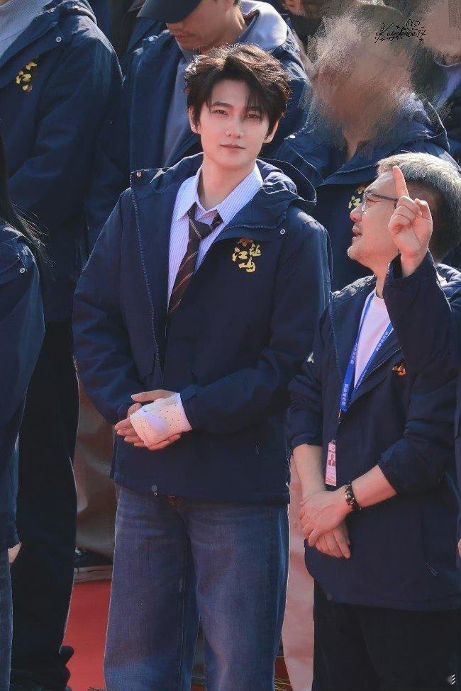杨洋左手受伤杨洋前段时间左手受伤了,今天《不让江山》开机,手还是被固定着,要快快好起来呀杨洋左手受伤了杨洋周洁琼不让江山开机同框