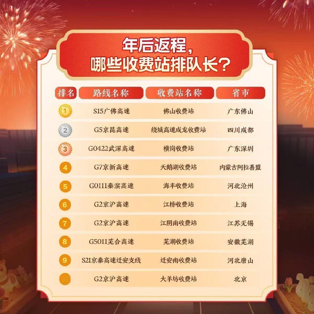 春运大迁徙又来了春运返程大迁徙正式开启,正月初六迎来全国拥堵高峰!大数据提醒:广佛、沪渝等核心路段易排长龙,车流密集缓行。请大家提前错峰出行、合理规划路线,平安顺畅返程~年后第一波返程高峰已经到来