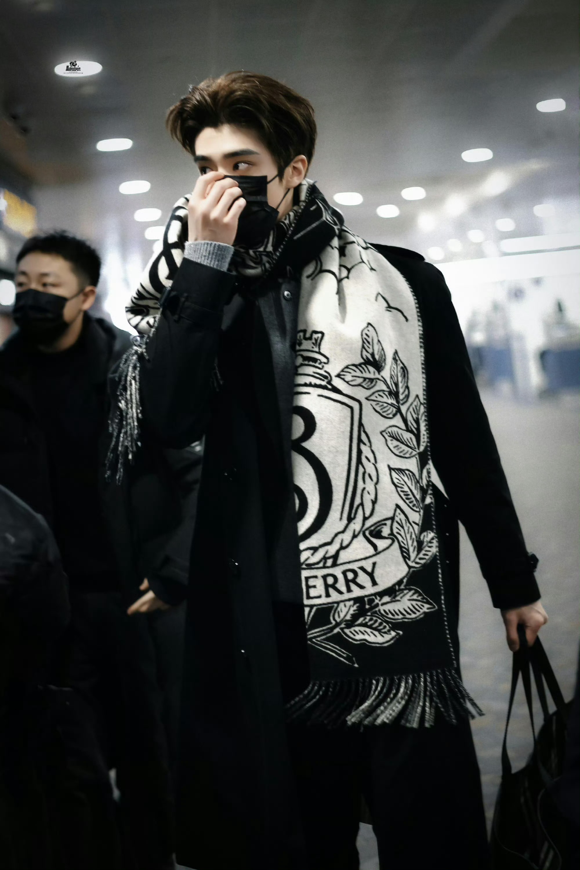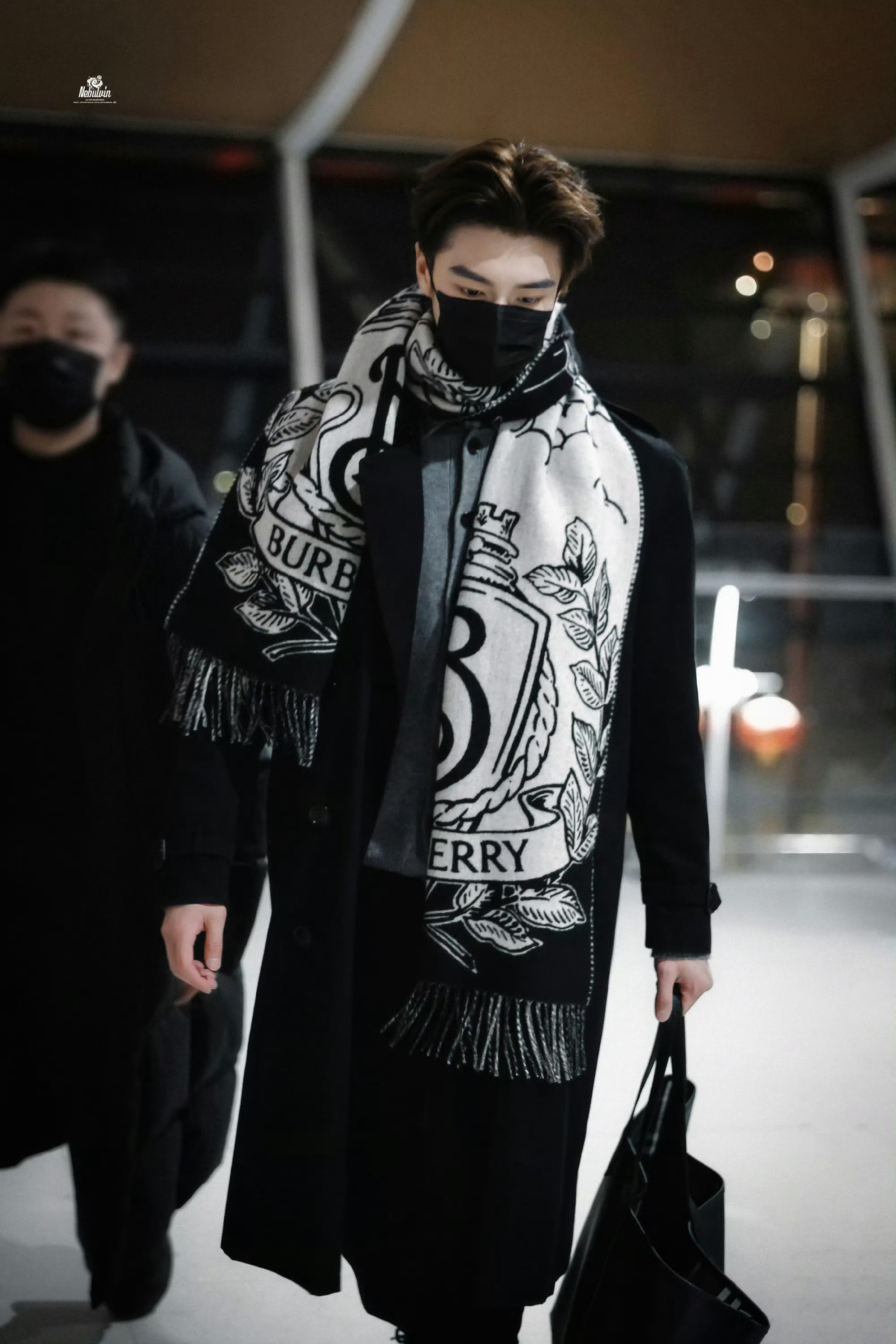 张康乐 in Burberry ✈️🇬🇧 启程前往伦敦时装周,将出席品牌2026冬季大秀,黑色长款大衣内搭灰色羊绒开衫,再系上骑士图案围巾,高挑的身形,俊朗的轮廓,妥妥的男模气场!他的时装周首秀,浪漫的英伦之旅。