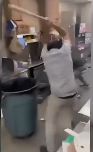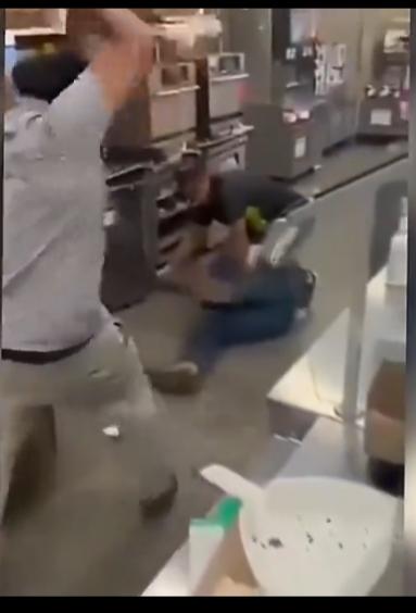 还是三哥厉害! 在美国,一个蒙面黑哥闯进三哥的小店铺实施零元购。 三哥也不客气,一人立马按倒黑人,另一人立刻抄起大棒朝黑人猛扎!把这个零元购的黑人打得如杀猪般的大声嘶叫。 三哥还兀自不肯停手。 看来这个黑人双腿要被打断了。 正是无赖遇上了狠人!