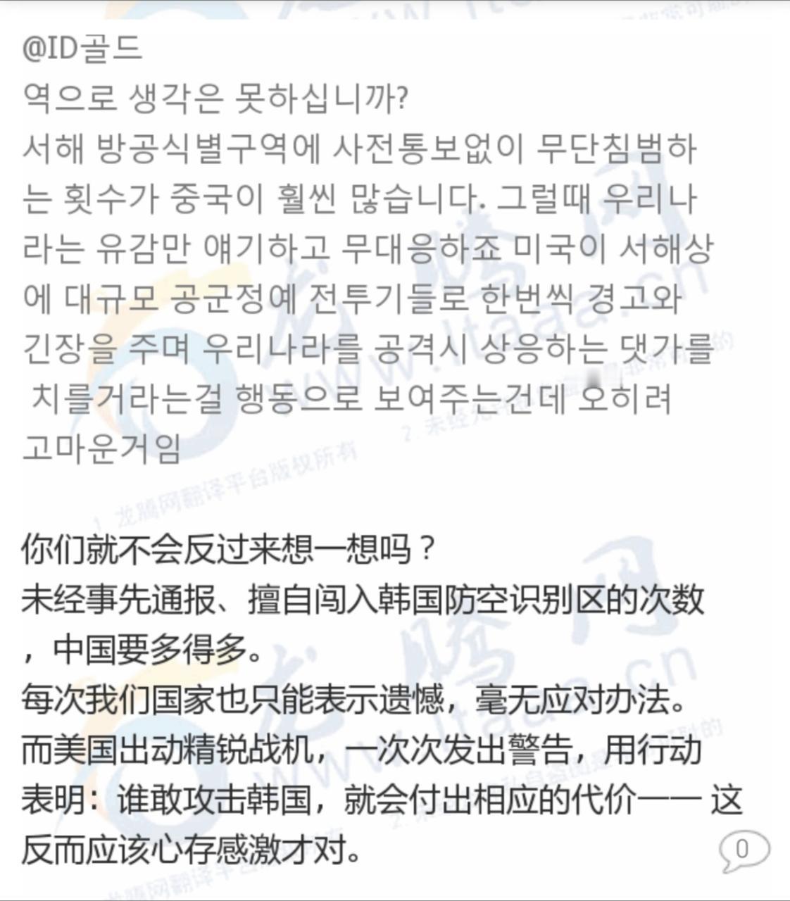 🔻转自群友,韩国右翼对于昨天美军和PLA空中对峙的评论:呀shake it,立刻召见美国大使,让他跪在太极旗下!