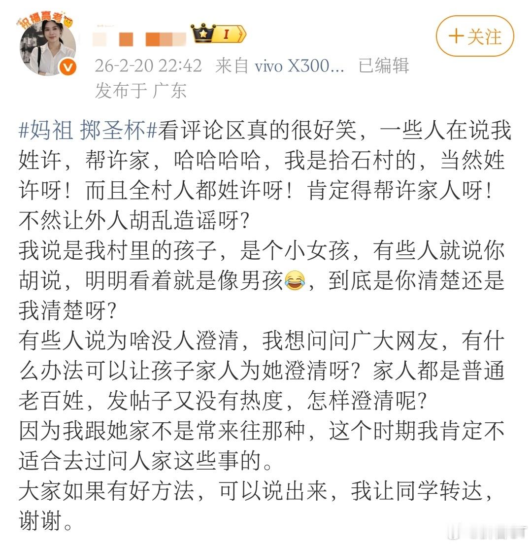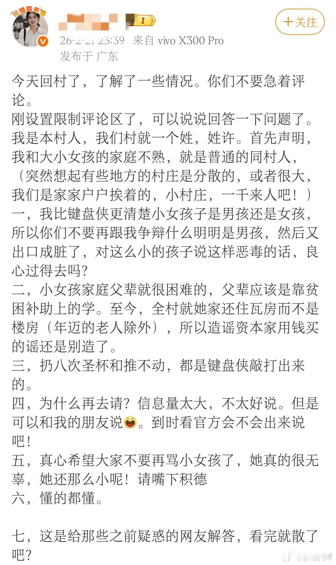 自称是同村村民的网友发声称,网传顶替女孩的短发男孩,实际上也是个女孩。