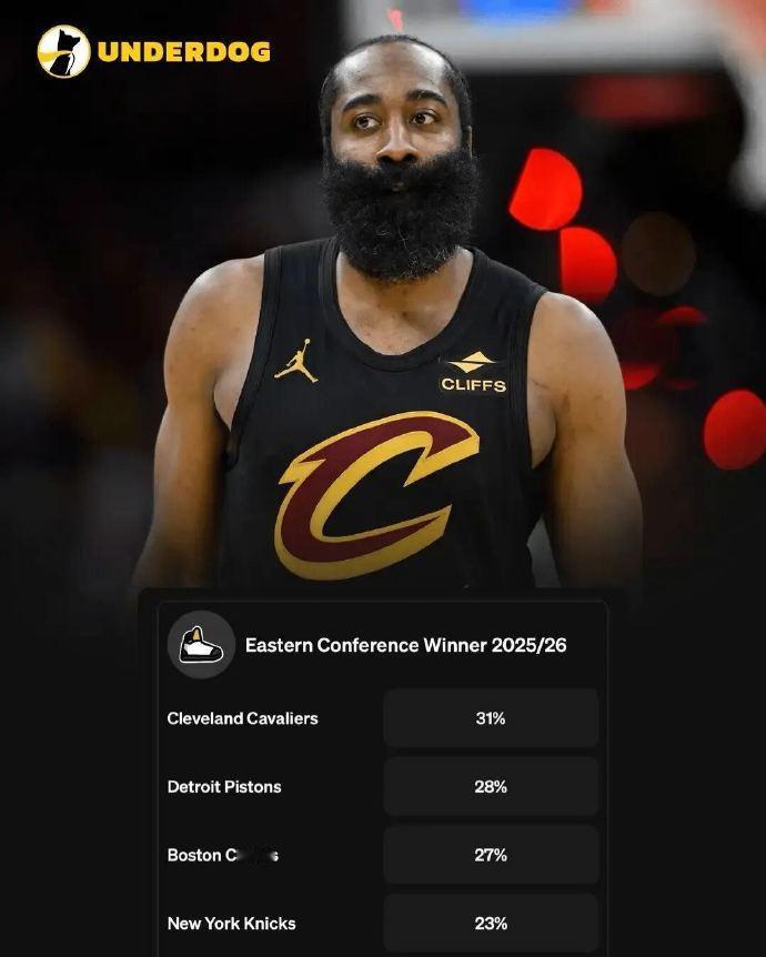 东部冠军概率: 1、骑士——31% 2、活塞——28% 3、凯尔特人——27% 4、尼克斯——23% 哈登加盟骑士之后,骑士在进攻端的开发直接上了一个档次,三分的投射和内线进攻都比原来更好。 现在是外线有哈登、米切尔,内线有莫布里和阿伦,只要泰森和韦德有正常发挥,这套阵容就相当有战斗力,在东部的确有很大可能登顶。 但至少在目前看来,东部无论是谁冲出来了,想要和西部前三的球队打一轮系列赛,都是胜少负多,西部那几个还是太强了。