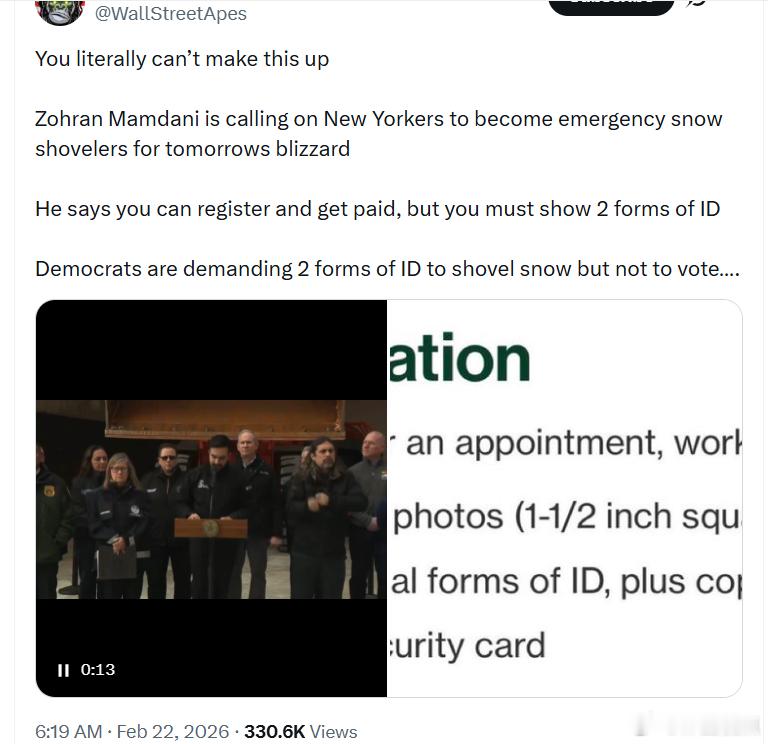 民左党人要求提供两种身份证明才能铲雪,却不要求投票时出示……